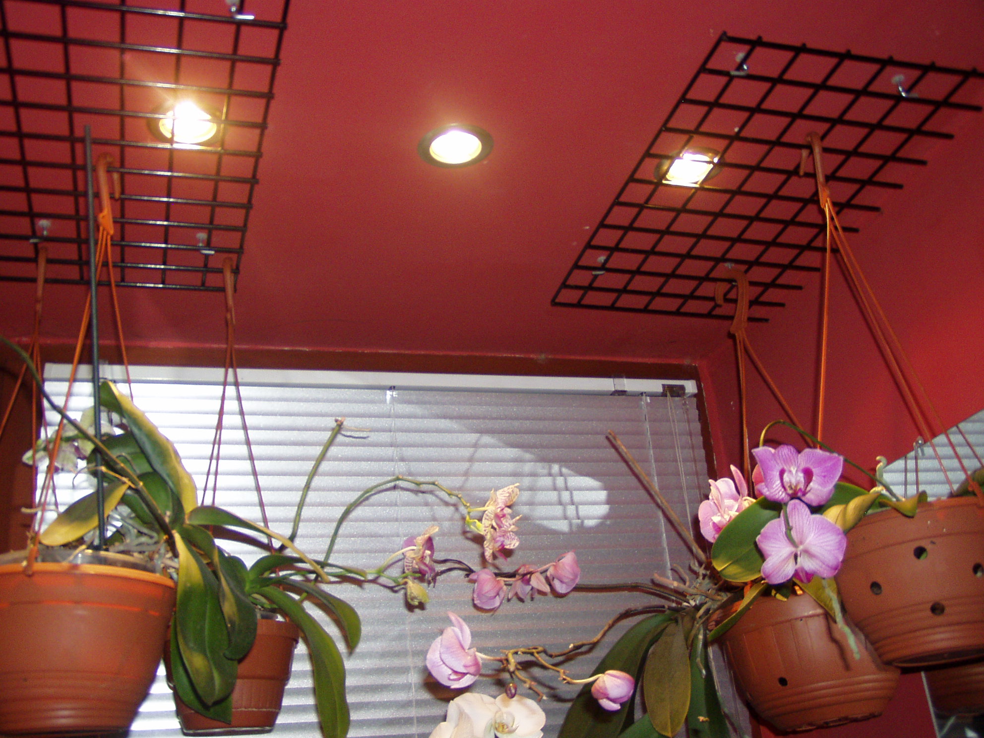 Moja propozycja jest taka: półkę wisząca na górze zawiesiłabym na wysokości parapetu[ dla storczyków niskich.] Wtedy one będą miały więcej światła.