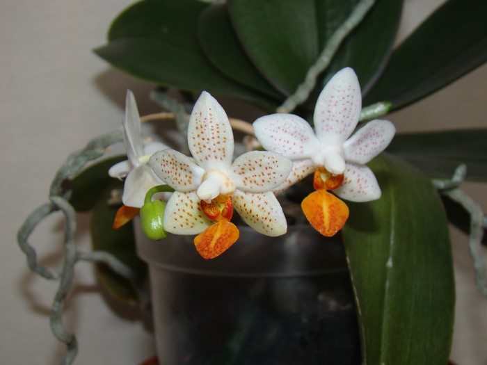 I jeszcze ciekawostka. Phal. Mini Mark w orchidarium nie był zasilany, jedyne "papu" to co sobie korzeniami z podkładki, ew. mchu ogródkowego pociągnął...No to co, chyba jednak wilgotność ma znaczenie? ;)
