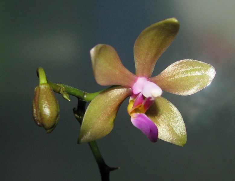 Kupiony co prawda z pąkami, ale myślę, że warto pokazać ten uroczy kwiatuszek w mojej ulubionej kolorystyce :) Pączek otworzył się u mnie. Wielkość kwiatu - około 2,5cm, nie pachnie. Na razie to nowość, przechodzi okres kwarantanny na wschodnim parapecie. W obawie o los kwiatu i kolejnego pączka przy drastycznej zmianie warunków przeniosę do ciepłego orchidarium dopiero jak roślina przekwitnie.