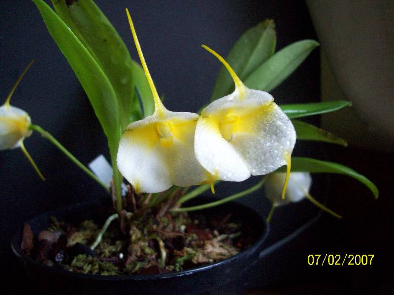 Pierwsza Masdevallia aquarius kwitnie mi od początku,a dostałam kilka maleńkich listków,druga po roku,potem trzecia i kiedy zobaczyłam,że właśnie Masdevallia u mnie dobrze się mają zaczęłam kupować nowe.