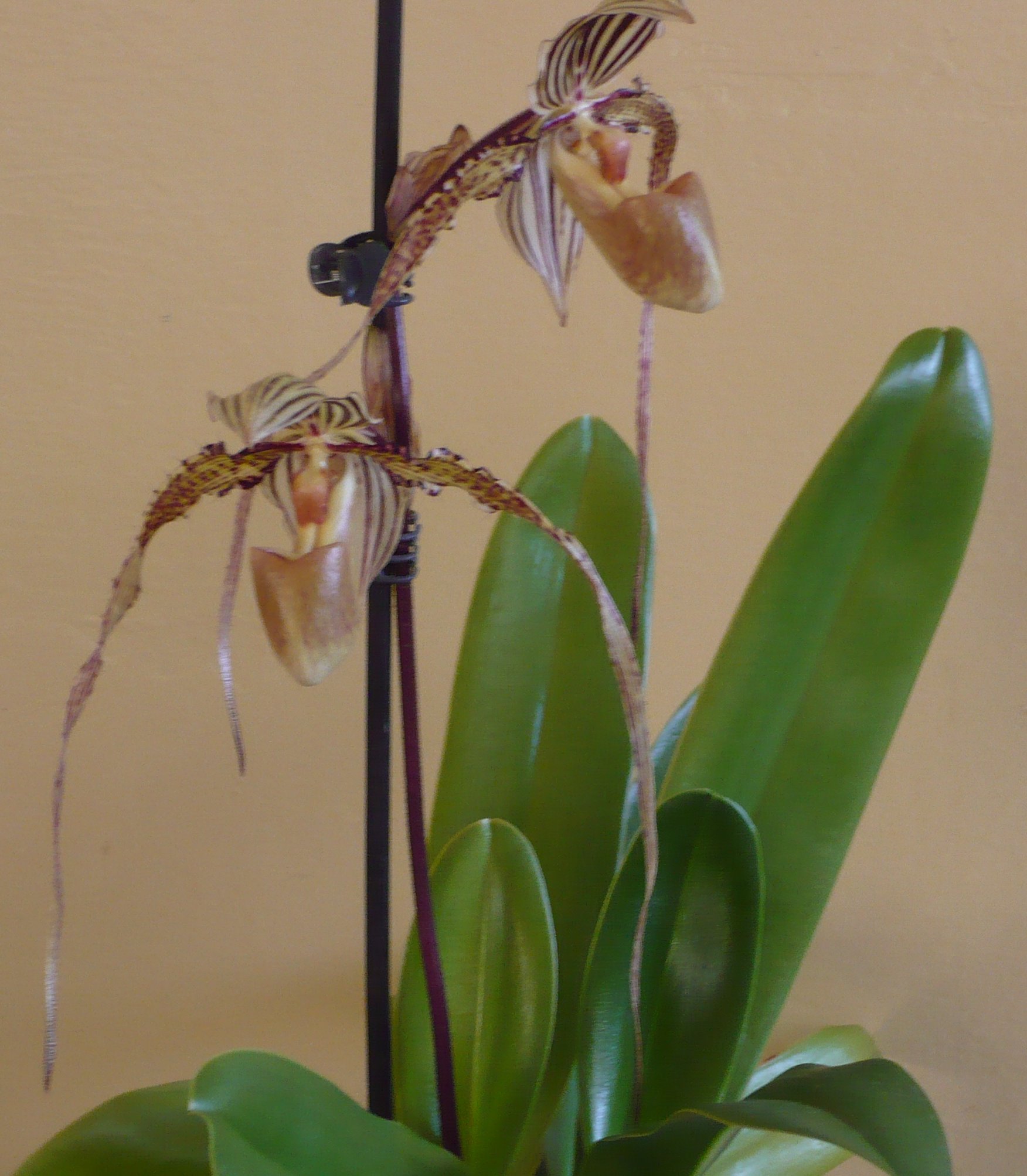 [(Paph. rothschildianum x Paph. sanderianum) x Paph. philippinense].