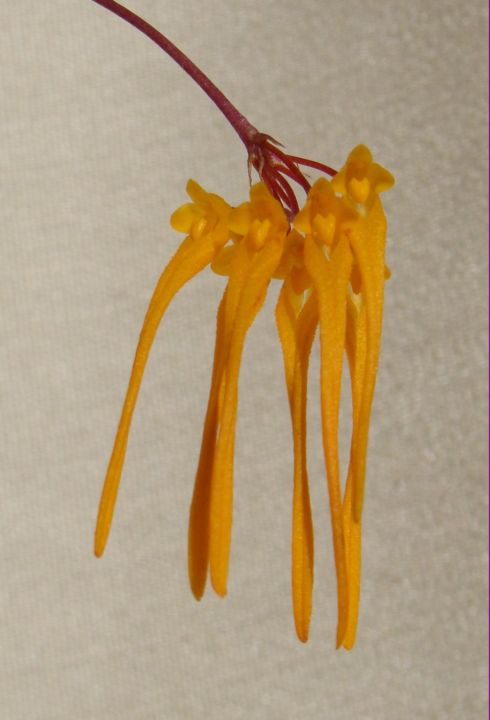 Co ciekawe, obok tego bulbophyllum stoi klon mający mieć czerwone kwiaty. Warunki więc są identyczne. Ale rozwój rośliny inny.