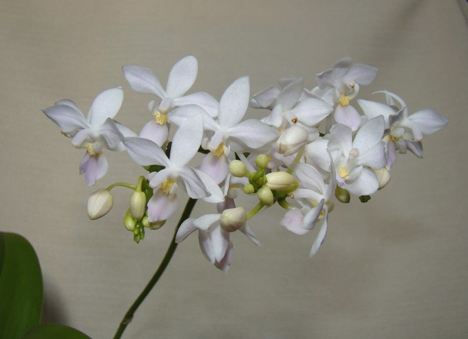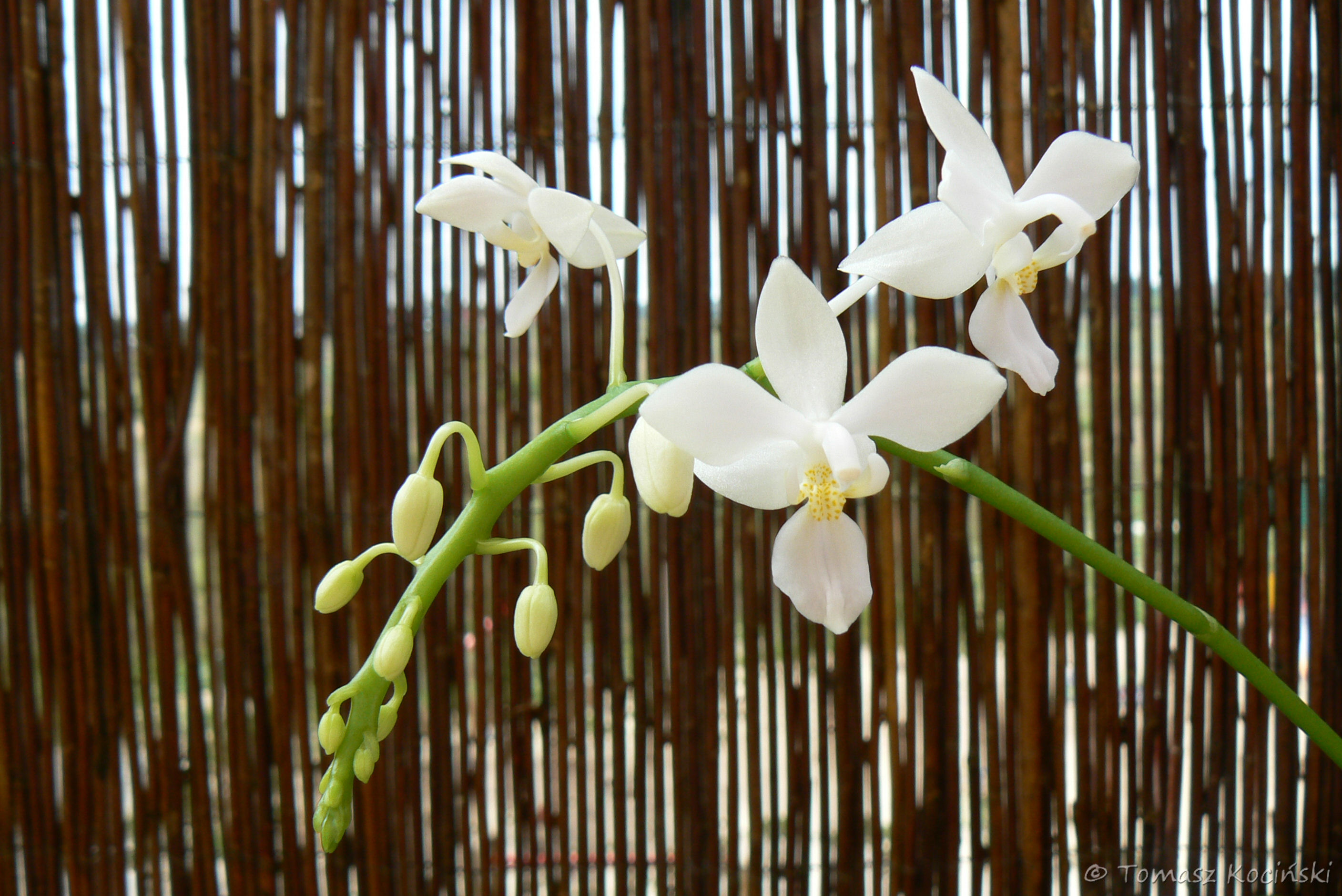 agnes pisze: Denerwuje mnie jednak to, że pęd kwiatowy ciągle się przedłuża ( obecnie około 20 cm) a na jego szczycie dosłownie kilka malutkich kwiatuszków :shock: . sztuką jest doprowadzić do tego by na Ph. equestris była burza kwiatów