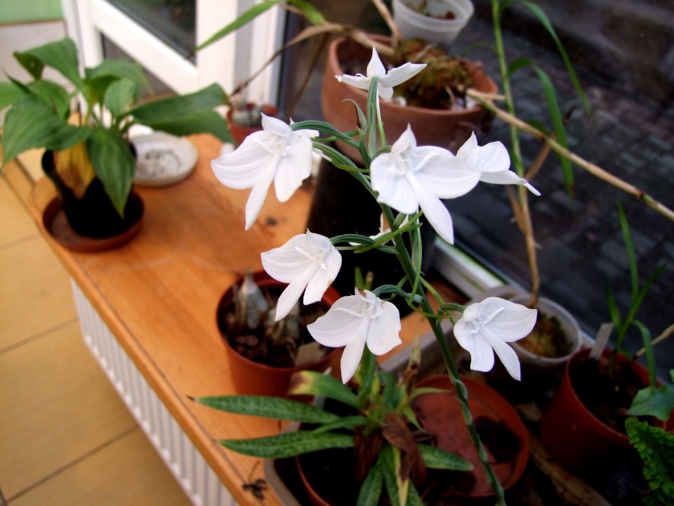 Habenarie to rodzaj o przeróżnych kwiatach, ale o takich samych warunkach uprawy. Postępujemy dokładnie tak jak ze śpiochami. Po kwitnieniu liście zasychają, przerywamy więc podlewanie. Trzymamy na sucho aż do pojawienia się nowych przyrostów. Wszystkie kupowałem w mchu, tak też je dalej uprawiam. W czasie spoczynku mech wymieniam. Przy tym zabiegu należy baczyć, żeby nie uszkodzić jędrnego, bulwiastego kłącza. Myślę że i na parapetach czułyby sie nieźle.