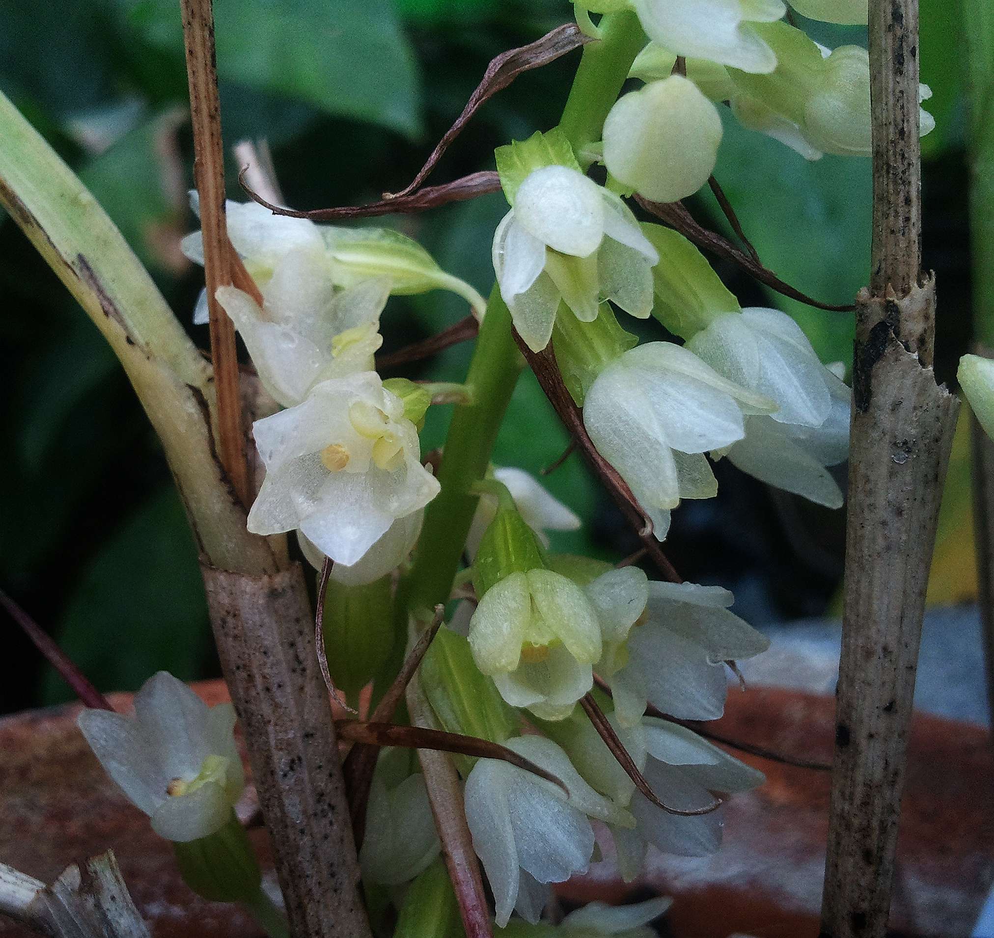 Myślę że to niespecjalnie znana hodowcom przedstawicielka gruntowych storczyków Nie prezentuje się zbyt ciekawie, ot, wygląd jak pęczek małych cebul z liśćmi Ale kwiatostan ciekawy i podobno pachnie. No, zobaczymy Przynajmniej termin kwitnienia się zgadza Najpierw myślałem, że to się młode przyrosty pojawiły w okolicach grudnia, a tu niespodzianka.