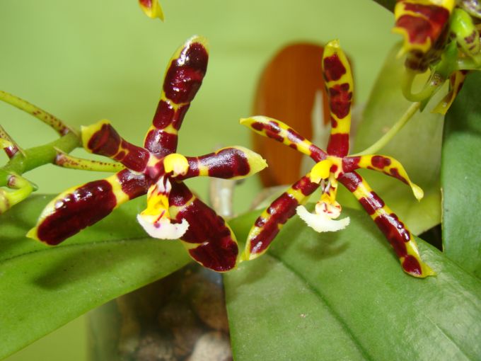 Od miesiąca kwitną u mnie: Phalaenopsis mannii 'mahogani' oraz Phalaenopsis mannii black. Stoją na zachodnim parapecie, więc muszę je cieniować. O ile 'Mahogani' zakwita regularnie co rok, tak forma black zaszczyciła mnie kwiatami po raz pierwszy, po dwóch latach uprawy. Kwiaty różnią się nieco między sobą, natomiast zapach jest taki sam - korzenny, z nutką pieprzu.