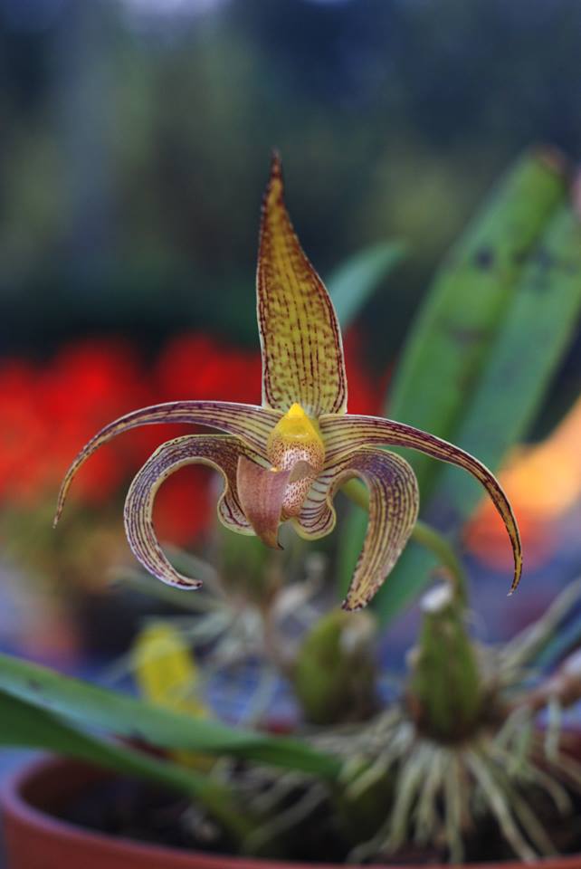 oto moje jedyne kwitnienie w tym roku. Wiosną tego roku dostałem od Ryszarda miskę z kilkoma dorosłymi bulwami bulbo oraz zaczątkiem młodego przyrostu. Około miesiąca temu coś zaczęło wydostawać się z podłoża. Teraz to coś wygląda tak.