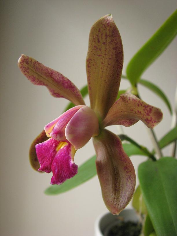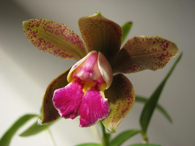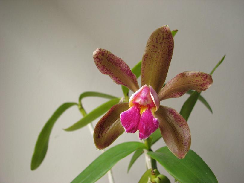 Roślinę mam niecały rok. To jej pierwsze kwitnienie u mnie. Niewiele wyższa od mojej cattlei forbesii, zatem dość kompaktowa, filigranowa roślinka. Lato spędziła w szklarence na zewnątrz, chroniona przed bezpośrednim działaniem promieni słonecznych. Wielkość kwiatu - około 8cm, do południa dość intensywnie, dla mnie bardzo słodko, pachnie. Mam nadzieję, że komuś się spodoba