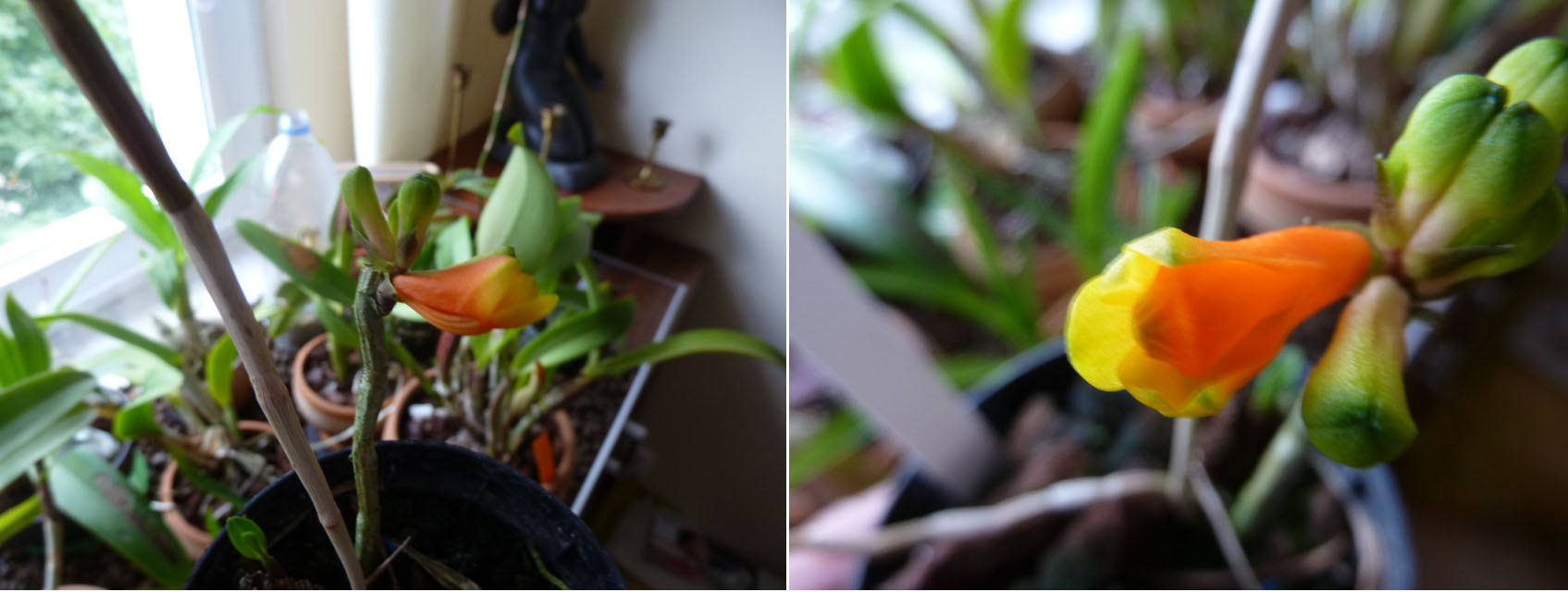 Niewielka roślinka (około 20 cm.), a już rozpoczęła kwitnienie. Rośliny w doskonałej kondycji , teraz aklimatyzacja i próby uzyskania kwiatów 'swoich'.