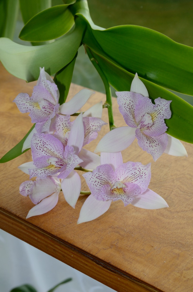 Właśnie zakwitła u mnie orchidea kupiona jako nieoznaczona cattleya w storczykarni w Łańcucie. Na podstawie informacji znalezionych w internecie przypuszczam, że jest to dialaelia Chantilly Lace 'Twinkle'. Oczywiście przy storczyku nie było żadnej fiszki, stąd znak zapytania. Dorosła pseudobulwa ma 4 liście, a pęd kwiatowy pojawia się bez jakiejkolwiek pochewki kwiatowej. Poprzednio kwitła w lutym tego roku, zaledwie 4 miesiące temu.