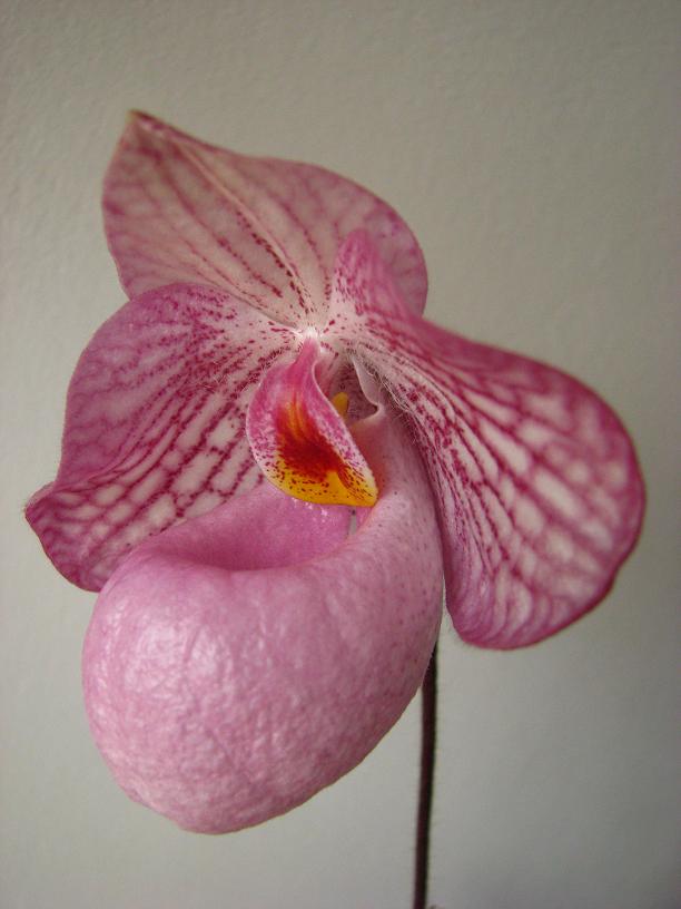 Zakwitło i u mnie tytułowe paphiopedilum. Nie sądziłam, że to tak łatwo nastąpi, wydawało mi się, że w nocy miał zdecydowanie za ciepło. Szczególnie ostatniej zimy. Uprawiane z innymi z rodzaju paphiopedilum na parapecie północnego, ale jasnego, okna, zaraz przy szybie. Podłoże z drobnej kory wymieszane z tym do naskalnych, na wierzchu sphagnum. Staram się, żeby zbyt mocno nie przesychało, jednak nie zawsze za nim nadążam ;)