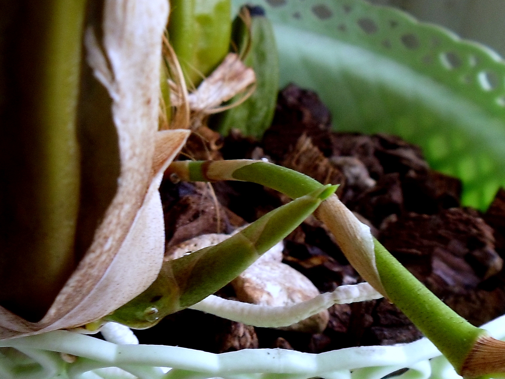 Płonne były moje nadzieje bo rośnie tylko druga, tegoroczna pseudobulwa. Teraz widać to wyraźnie. Marta