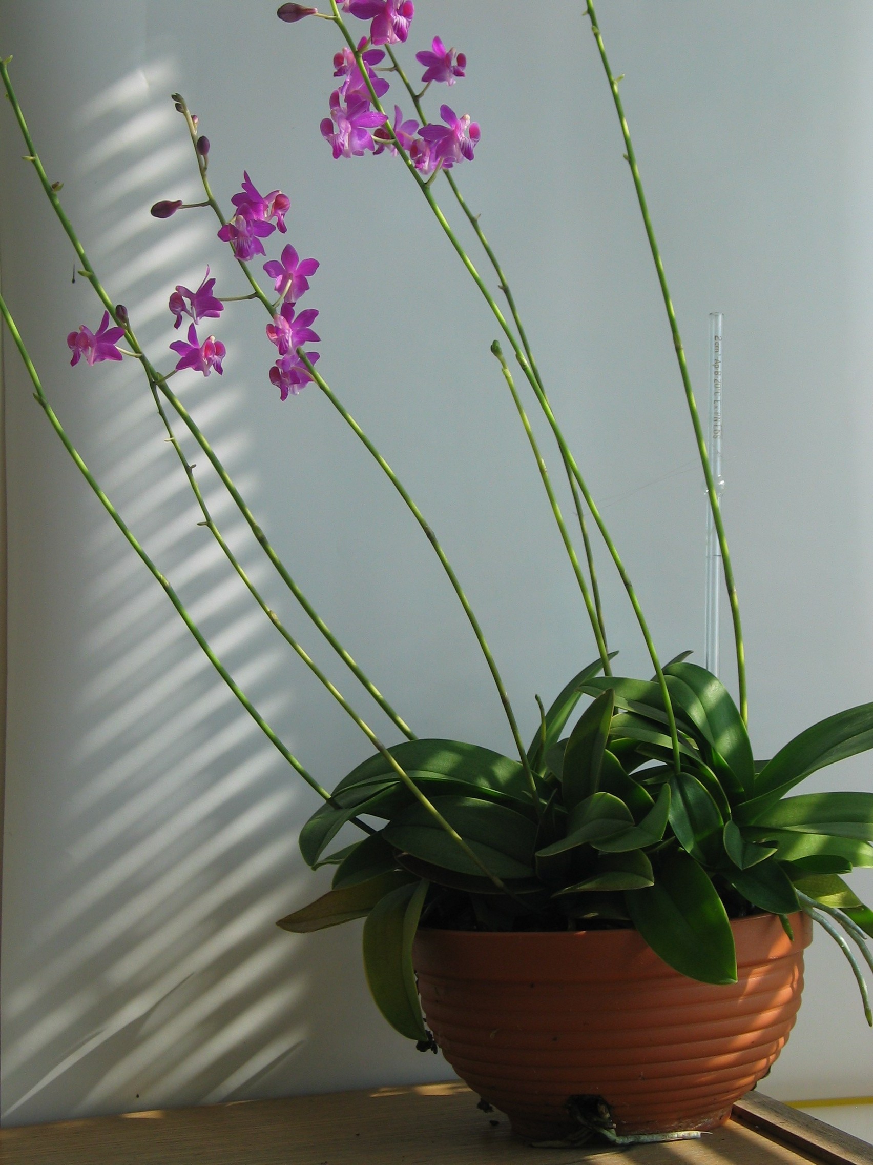 Doritis pulcherrima wymaga światła w granicach 10-15 klx, u mnie rośnie na oknie ze wschodnią wystawą, nie jest doświetlana.