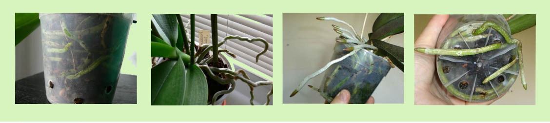 Niektóre nasze Phalaenopsis mają więcej, niektóre mniej korzeni powietrznych. Zasychanie ich jest często spowodowane niską wilgotnością powietrza oraz wysoką temperaturą panującą w pomieszczeniu. Powinniśmy podnieść wilgotność wokół rośliny (tacki z keramzytem). Można lekko spryskiwać powierzchnię podłoża, wtedy z pewnością pojawią się nowe.