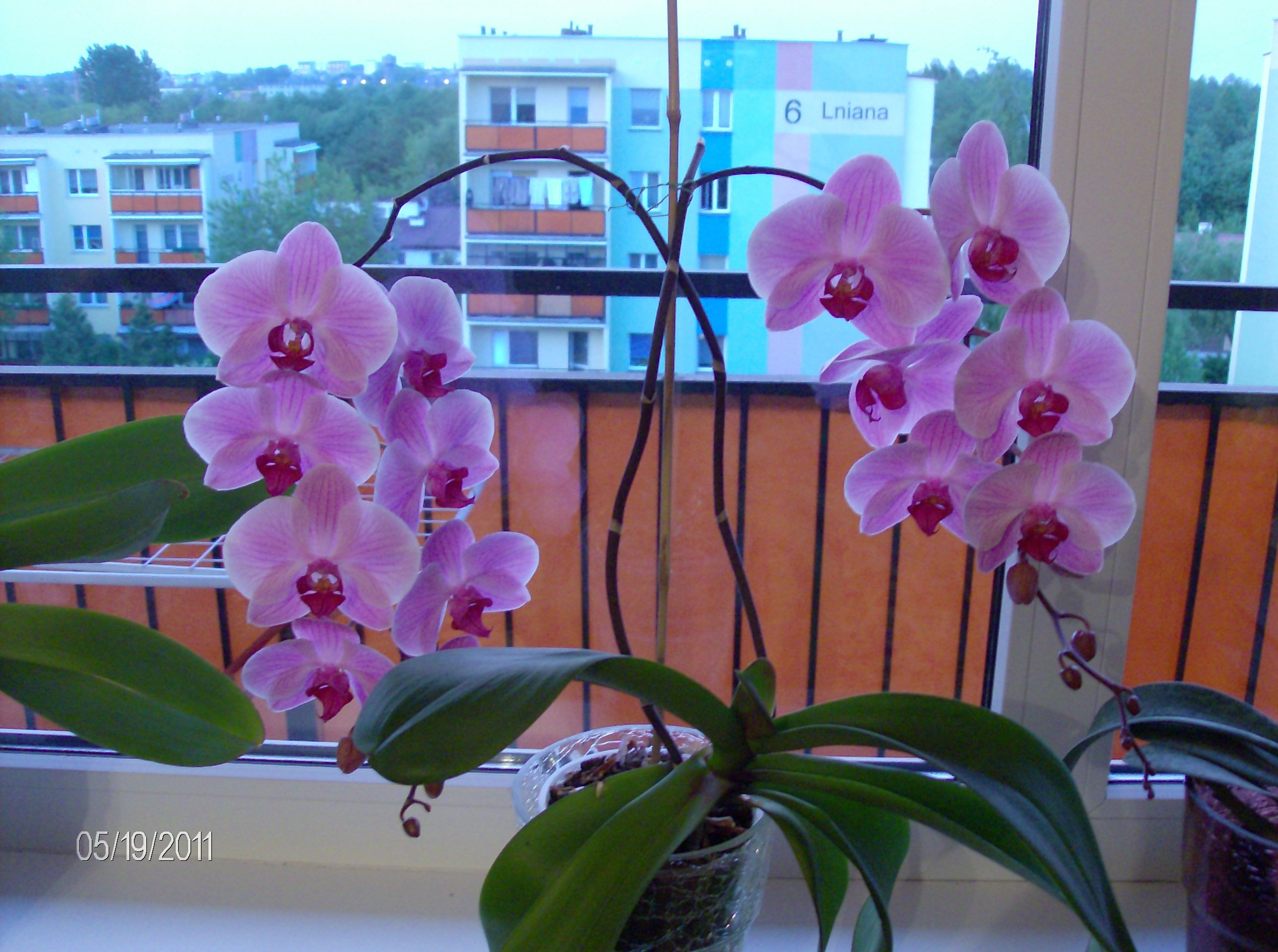 Pragnę pochwalić się naszymi okazami. Hodowane są wbrew wszelkich zasad zalecanych przez znawców, tzn stoją w osłonkach w których ciągle jest woda, okno od wschodu ale rolety podnoszone są gdy słońce już nie świeci prosto w okno. Kwitną dosłownie non stop. Najpiękniejszy prezentowany miał ponad 30 kwiatów na dwóch pędach.
