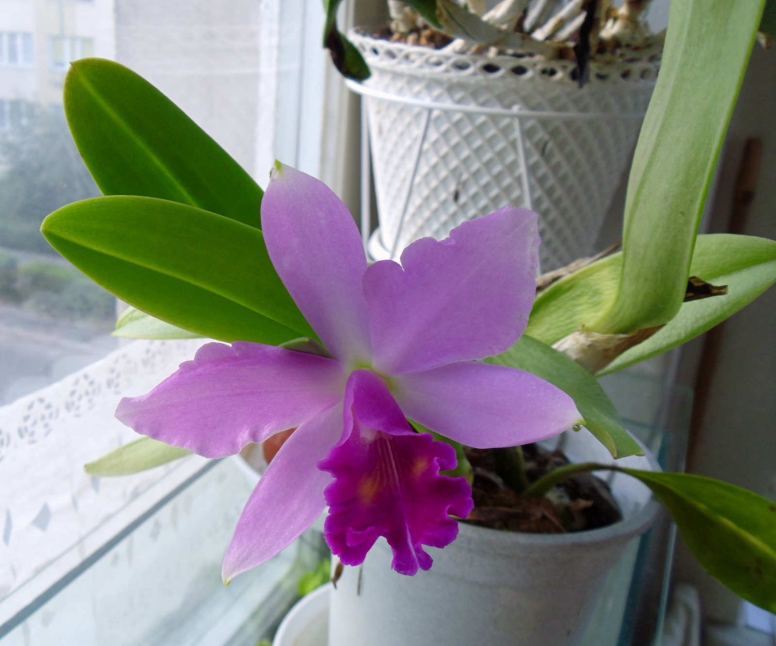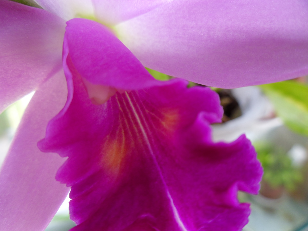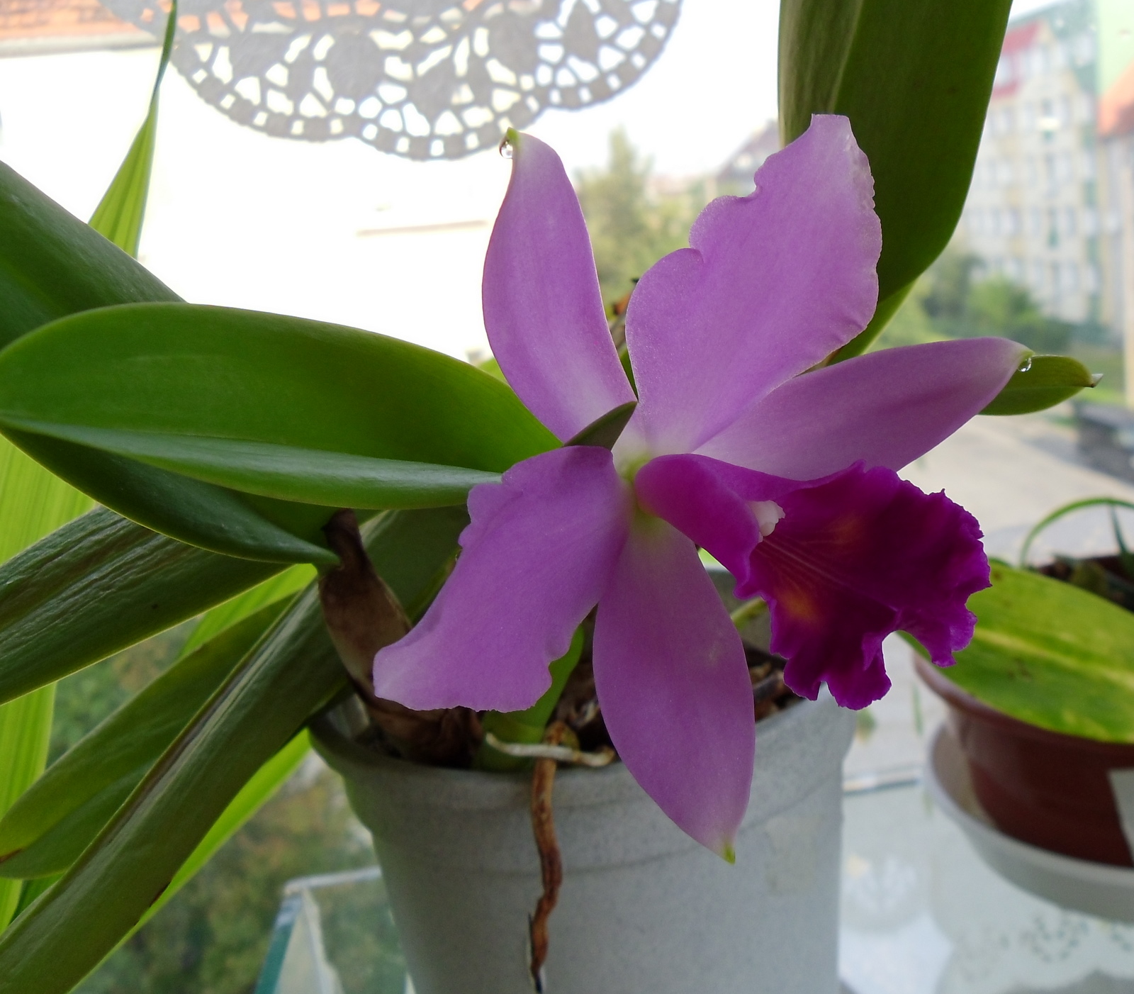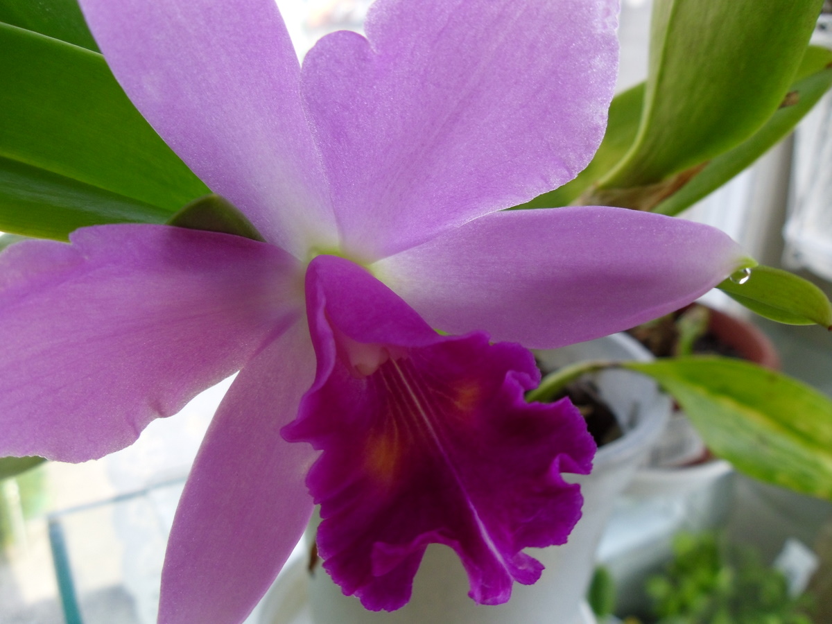 Przedstawiam Cattleya, chyba hybrydę, która dość silnie, a nieopisanie pięknie pachnie przed południem różą x fiołkami. Dostałam ją od jednego z wystawców w Lodzi na wystawie w 2009r. Był wtedy Dzień Kobiet i z tej okazji darczyńca powiedział mi ,,weż sobie jedną doniczkę, jaką chcesz,,. Zaszokowana wybrałam najskromniejszą katleję, bez kwiatków i nazwałam ją ,,Lodzianka,,. W domu, w czasie przesadzania, wykryłam powody jej skromnego wyglądu ale powoli, a stanowczo wyciągnęłam ją. Zakwitła pierwszy raz w 2010r dwoma kwiatami i okazało się że jest śliczna. Tego roku mam tylko jeden kwiat bo równocześnie tworzy następną psb.