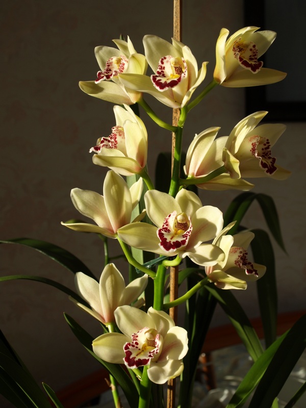 Witam wszystkich zimowo. Na moich oknach zakwitła vanda, już drugi raz w tym roku. Miała zamiar wydać pęd wcześniej, ale jej zaglądałam w listki i się zdenerwowała, a pęd zasechł . Wypuściła jednak ponownie. Rada dla wszystkich, którzy mają vandy ,nie ruszajcie liści, między, którymi wyrasta pęd kwiatowy, bo chyba tego nie lubią. Zakwitła też katleja i cymbidium. Pozdrawiam