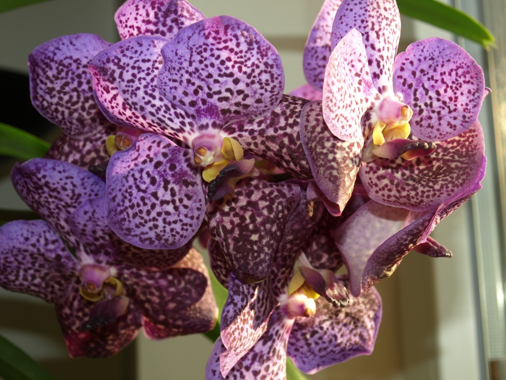 Zakwitła po długim oczekiwaniu Vanda Gordon Dillon "Blue Spot",oraz vanda też w kropki, ale o innym kolorze, bardziej liliowym. Ta ostatnia kwitnie trzeci raz w tym roku . Swoje kwiaty rozwinęła także Epicattleya Plicaboa. Słoneczne dni wpłynęły dobrze na wybarwienie kwiatów.