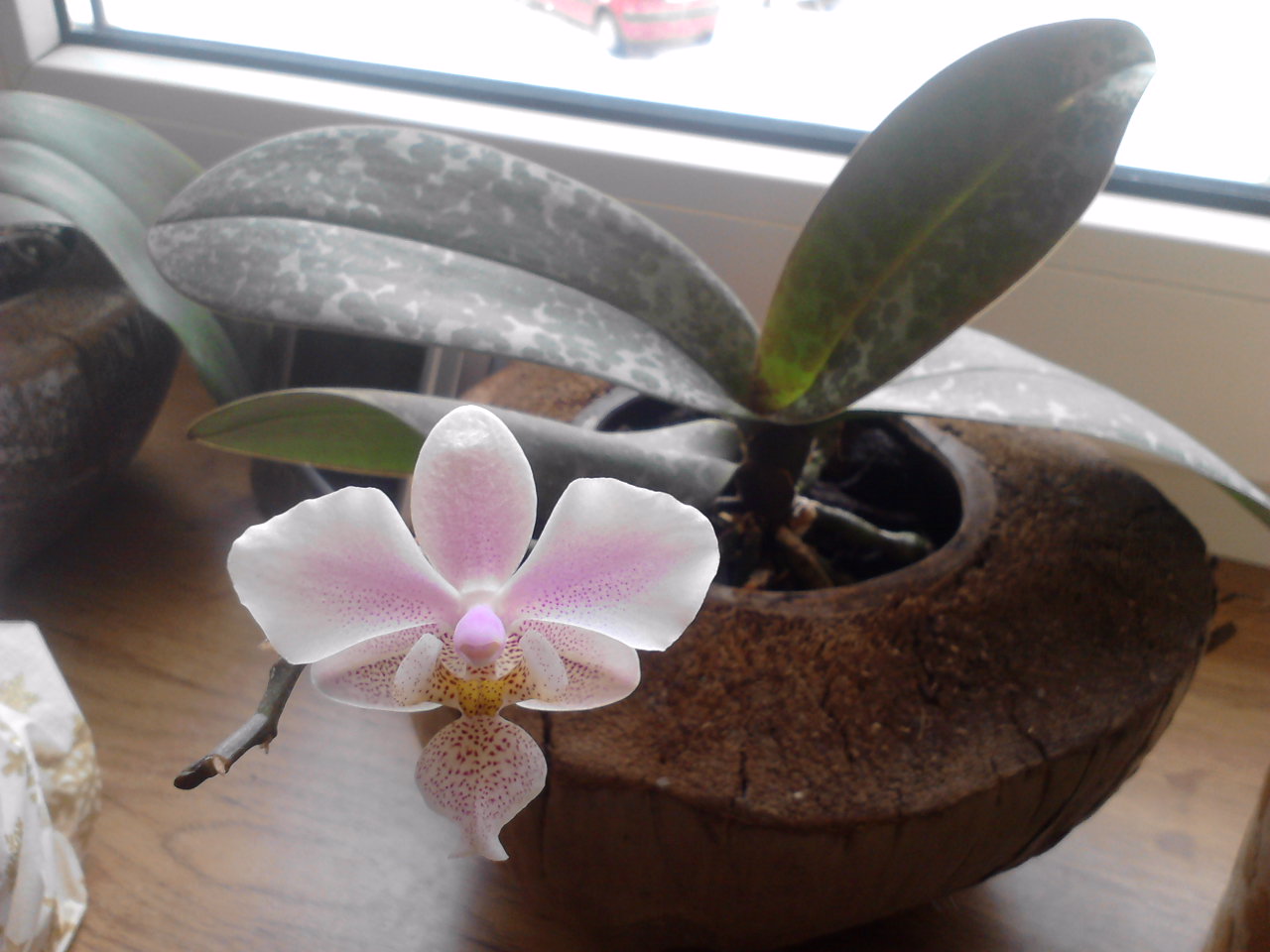 Wyjątkowo ładnie prezentuje się storczyk w tym kokosie :)