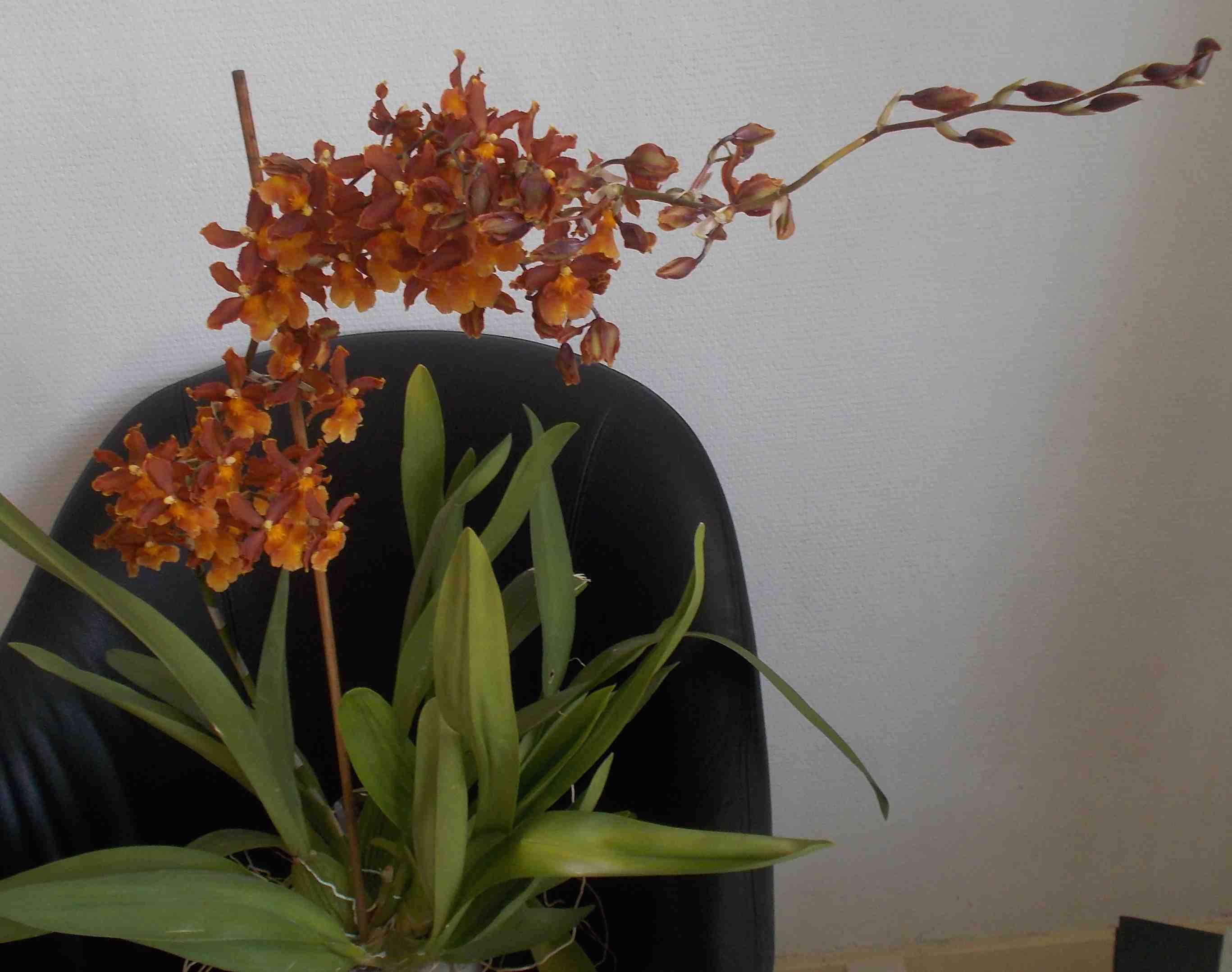 W tym momencie kwitnie u mnie hybryda onicidium (przynajmniej posądzam roślinkę o takie pokrewieństwo). Na około metrowym pędzie doliczyłam się tydzień temu ok 60 pąków.