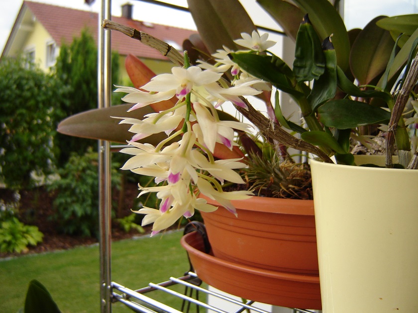 Przedstawiam Wam kilka storczykow z mojej kolekcji, od kilku lat rosna w mojej oranzerii .Lato spedzaja na dworze ,oprocz falkow Mimo wielu popelnionych glupot, tak tak ( nieotwarcie okna w upal -szybki wzrost temperatury do prawie 40 stopni , poczym nocny spadek do 16- zapomnialam zamknac okno .Niewspominajac o bledach w podlewaniu) jakos sobie rosna i czasami ciesza pieknym kwitnieniem.Dodam ze wszystkie kwitnienia sa moje , rosliny kupione jako mlode , zdolne do kwitnienia... . albo biedaki do ratowania .Cdn.