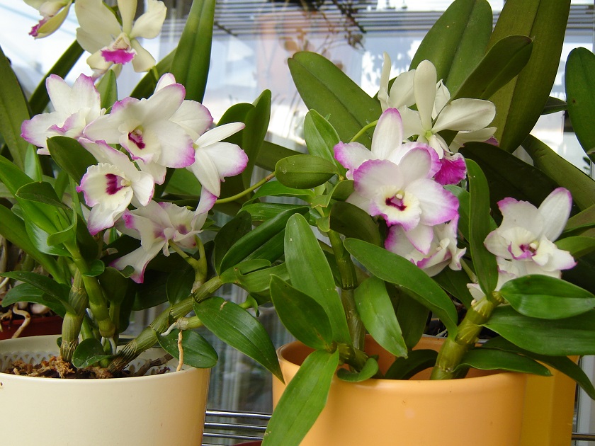 Przedstawiam Wam kilka storczykow z mojej kolekcji, od kilku lat rosna w mojej oranzerii .Lato spedzaja na dworze ,oprocz falkow Mimo wielu popelnionych glupot, tak tak ( nieotwarcie okna w upal -szybki wzrost temperatury do prawie 40 stopni , poczym nocny spadek do 16- zapomnialam zamknac okno .Niewspominajac o bledach w podlewaniu) jakos sobie rosna i czasami ciesza pieknym kwitnieniem.Dodam ze wszystkie kwitnienia sa moje , rosliny kupione jako mlode , zdolne do kwitnienia... . albo biedaki do ratowania .Cdn.