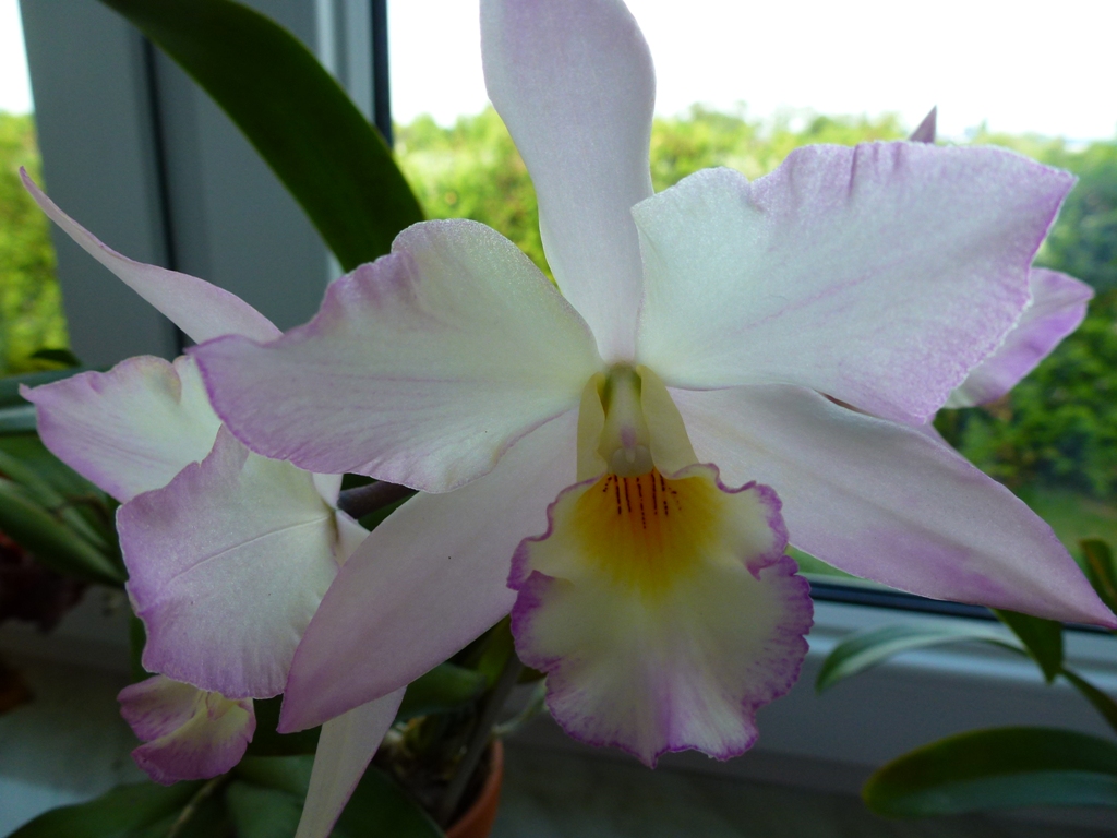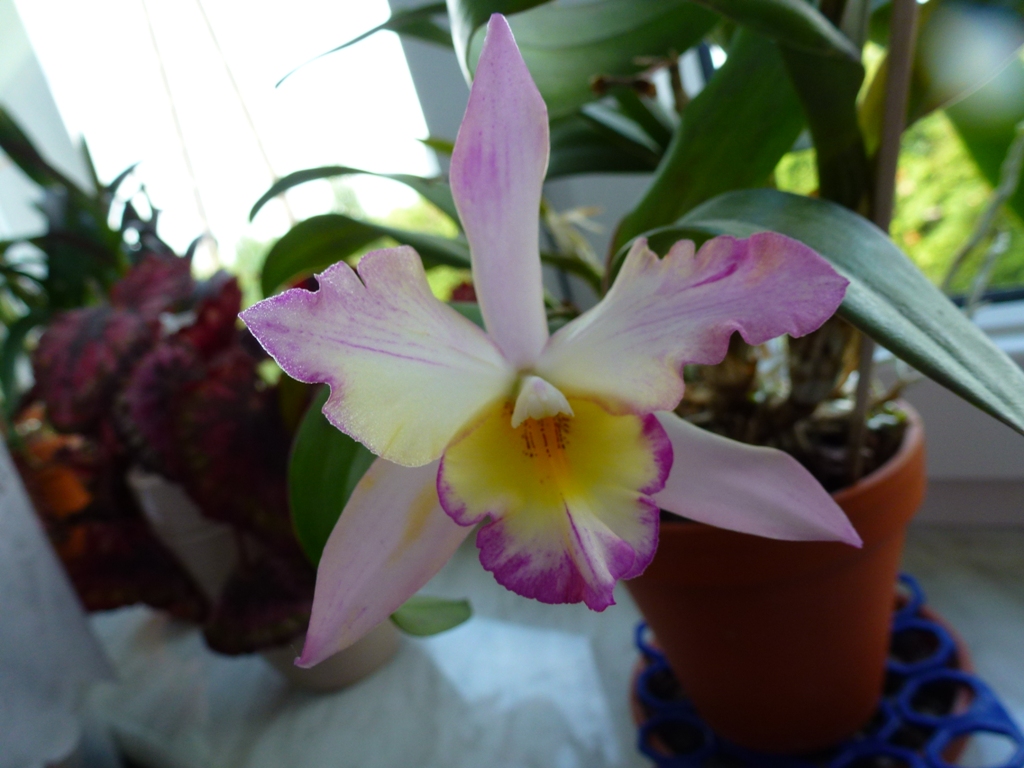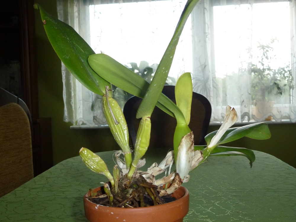 Stanowisko: Katleja rośnie w niskiej ceramicznej, nieszkliwionej doniczce dla begonii na parapecie wschodniego okna.