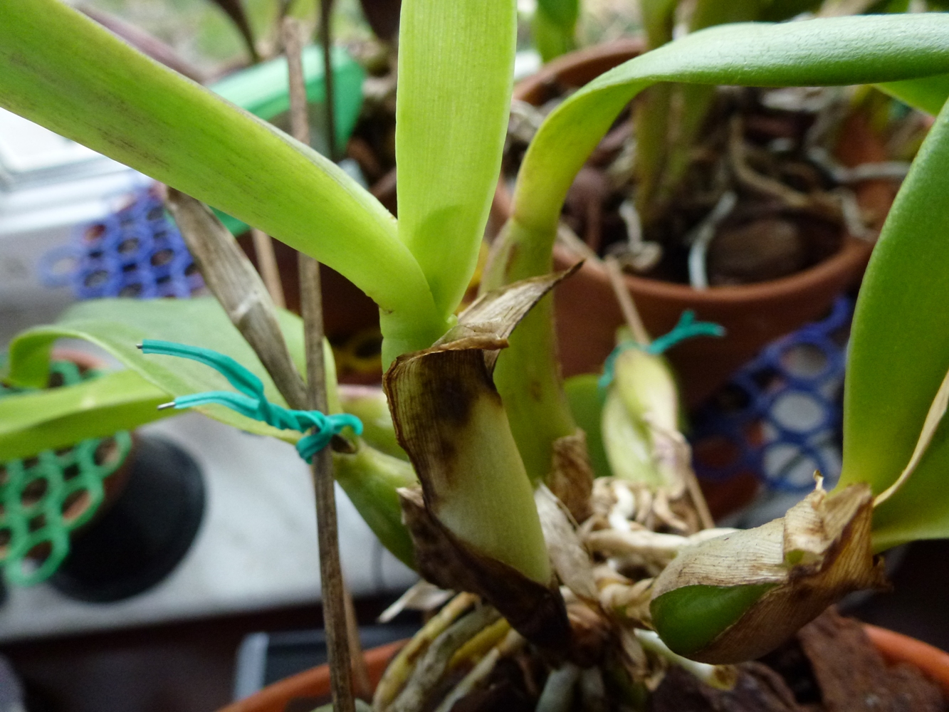 Psb z pochewką wypuszcza korzenie. Cattleya obecnie wygląda tak: