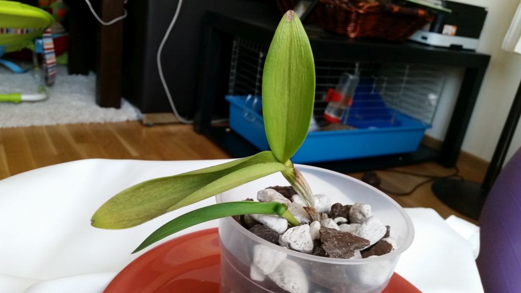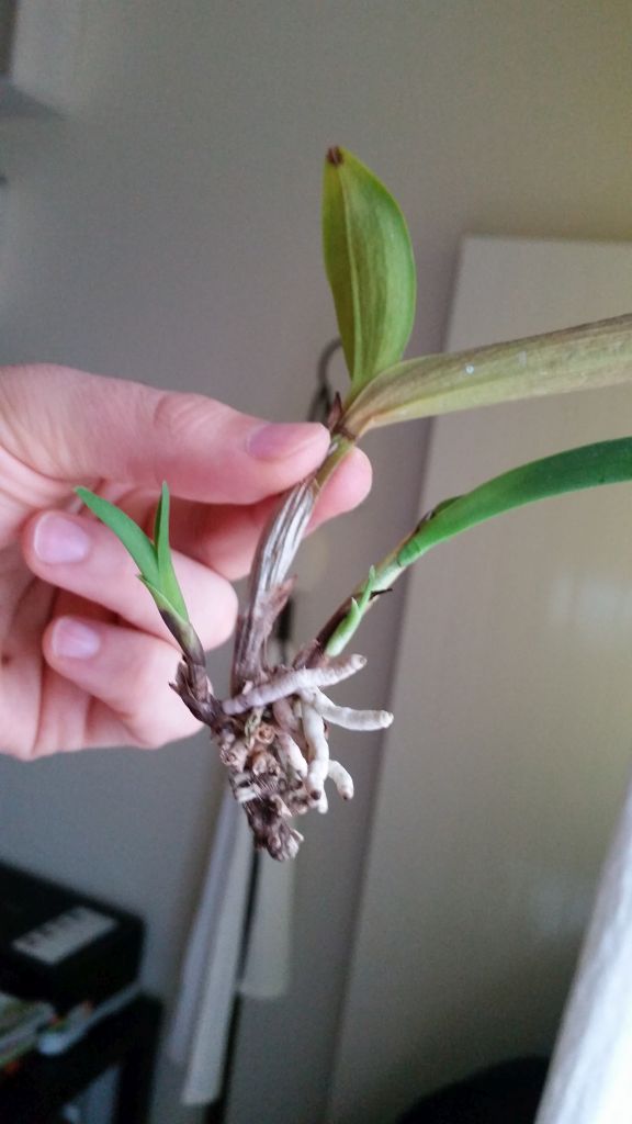 Może kilka słów o nazewnictwie - nowe odgałęzienia to pseudobulwy, króre u Twojej Cattleya mają dwa liście (C. jest dwuliścienna).