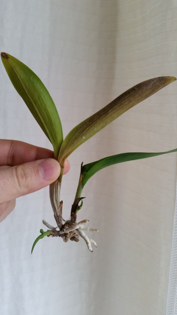 Nie wiem jak wyglądała wcześniej roślina ale mam wrażenie, że niepotrzebnie zostały oderwane, wycięte stare pseudobulwy. Są one rezerwuarem składników odżywczych, nawet jeśli zgubią liście i są potrzebne, wręcz niezbędne do wykarmienia nowych, młodych pseudobulw dopóki one same nie będą miały dobrego, własnego systemu korzeniowego. Niewiele piszesz o tym jak cattleya była do tej pory uprawiana. Jedno jest pewne, gdzieś został popełniony błąd w uprawie, być może raz została przelana, innym razem przesuszona...
