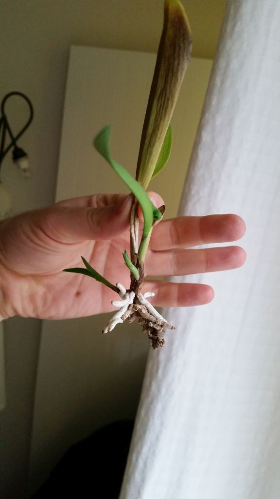 Druga psedobulwa a w zasadzie dwie pozostałe na razie są OK, korzonki też wyglądają w porządku no ale przeraziło mnie tempo degradacji tej pierwszej. Już mi nie wiele zostało z tej roślinki.