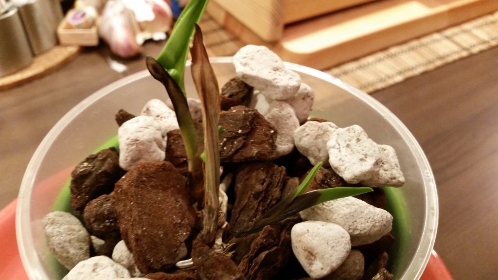 Dwa dni wszystko wyglądało OK. Dziś wracam z pracy i niestety zauważyłem że jedna z pseudobulw gwałtownie zbrązowiała, związane z nią korzonki błyskawicznie wyschły.