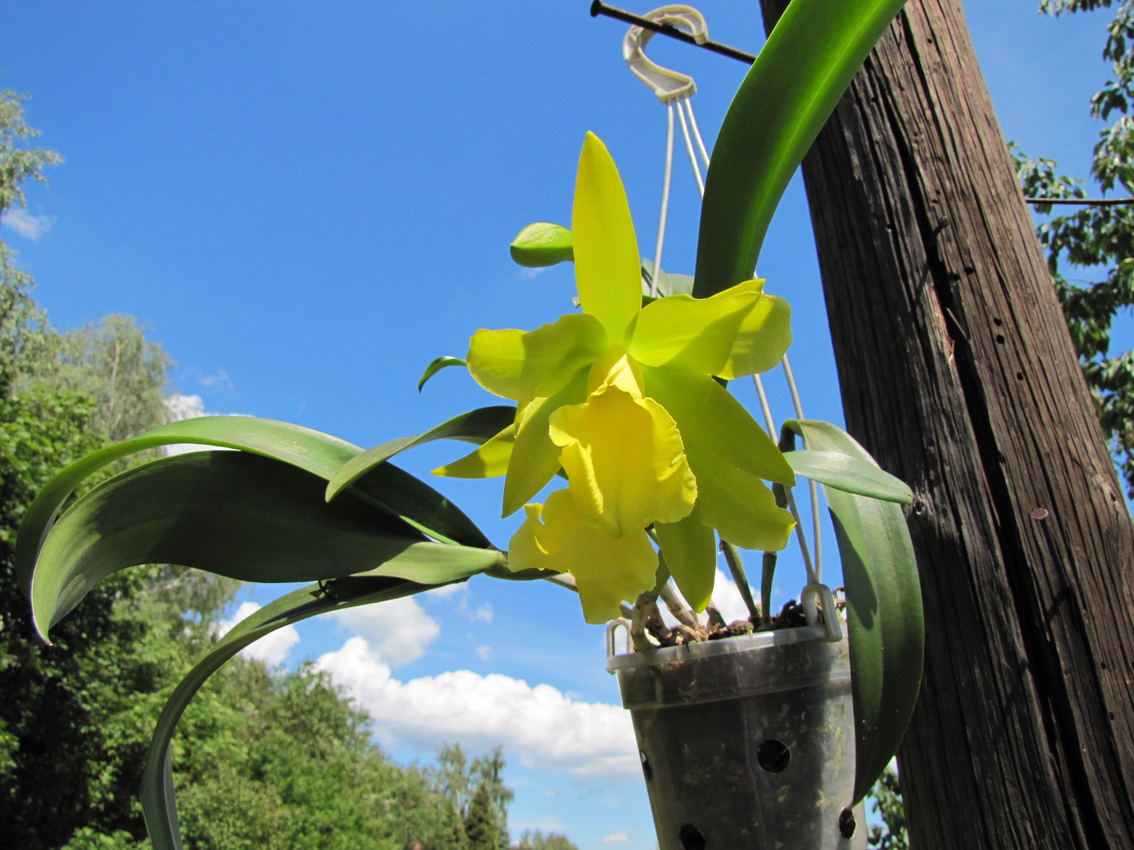 Zakupiona w roku ubiegłym, dość duża hybryda, jednoliścienna. Raczej bezproblemowa jak piszą na niemieckich forach i łatwo kwitnąca. Zapachu jeszcze nie wyczuwam, ale podobno kwiaty są pachnące ? Jak ktoś lubi żółte kolorki to polecam