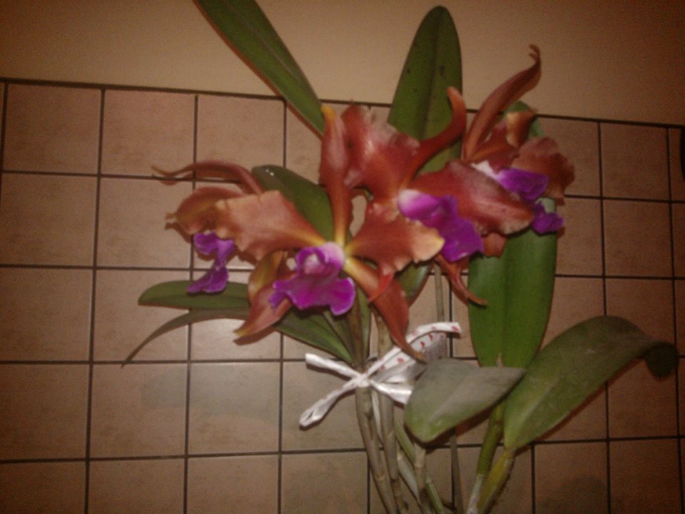 Moja ma w sumie 4 kwiaty,mąż ma zrobić zdjęcie,bo mnie do nie ma w domu,jak mi wyśle to wkleję.Roślina ma piękne kwiaty,ma w sobie cząstkę Laelia tenebrosa.