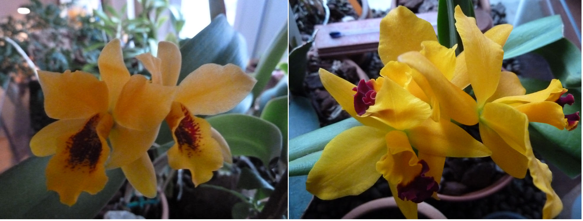 Skromna, widać, że miejskie klimaty niezbyt sprzyjają roślinom, wolały atmosferą 'wysokogórską' . Zakwitły, od lewej, Lc Gold Digger 'Orglade's Mandarin' i Potinara Love Love Rich clik