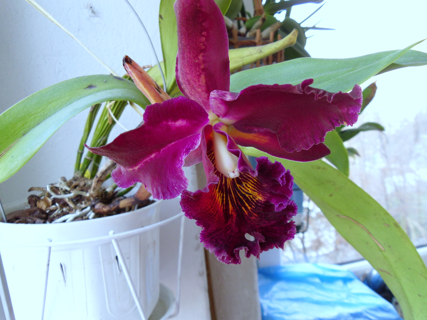 cattleye uwielbiają wodę, ale jeszcze bardziej powietrze w korzeniach. Stare bulwy nie wypuszczą już nowych korzeni, obserwuj co się dzieje z korzeniami z nowego przyrostu, który pokarze się w tym sezonie. Trochę czasu minie zanim roślina się pozbiera. Tutaj przydała by się albo przeźroczysta doniczka albo ażurowa. Ja tej zimy celowo przesuszyłem moje zbuntowane trianae, bulwy się zmarszczyły, teraz dopiero ruszyłem z obfitszym podlewaniem.