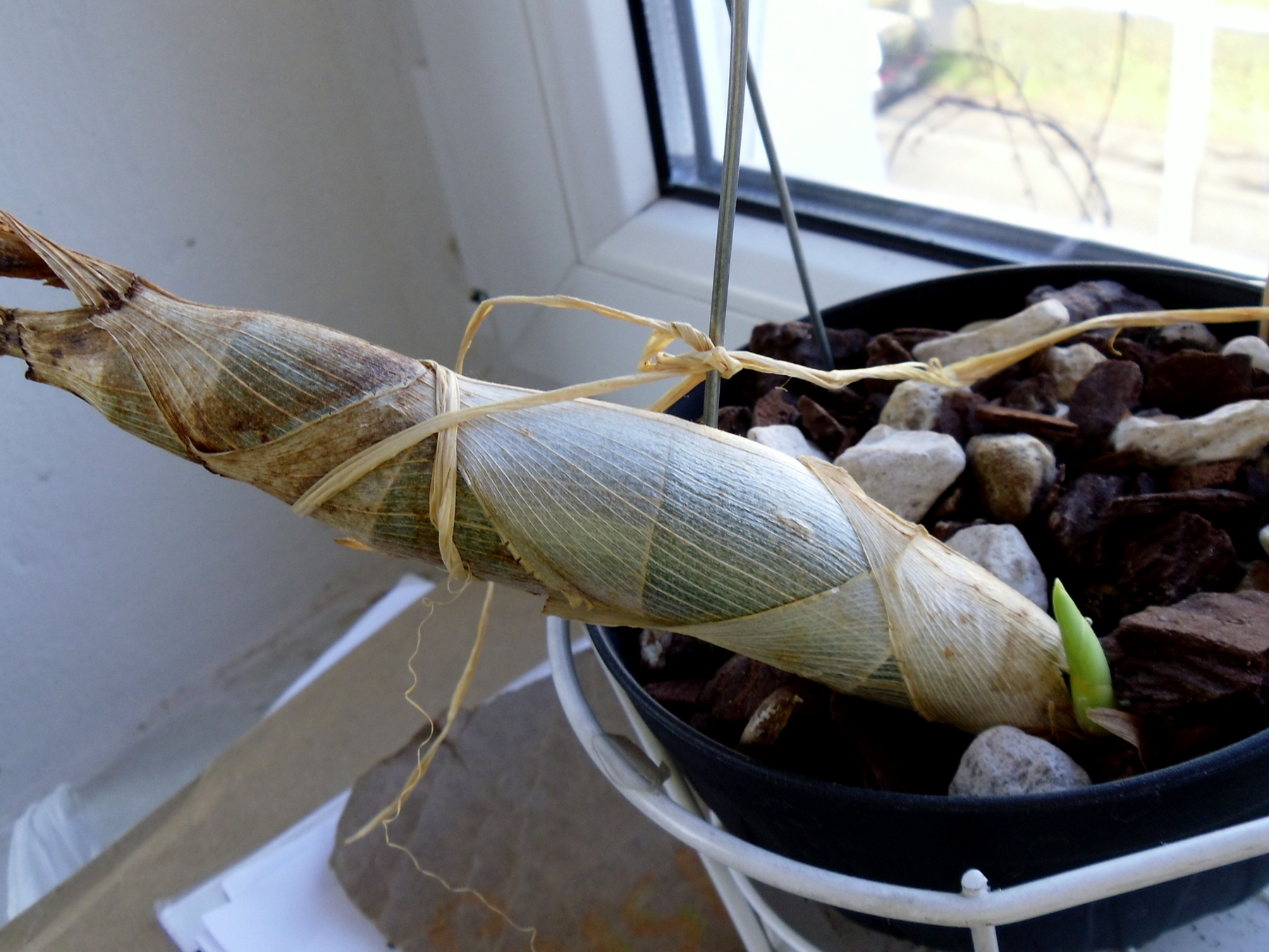 Po miesiącu drzemki zaczął tworzyć psb . Co to za pomysły w listopadzie tworzyć nową pseudobulwę?! Teraz przeniosłam go na bardziej słoneczne miejsce i zaczyna się podlewanie, zasilanie, podlewanie .....Marta