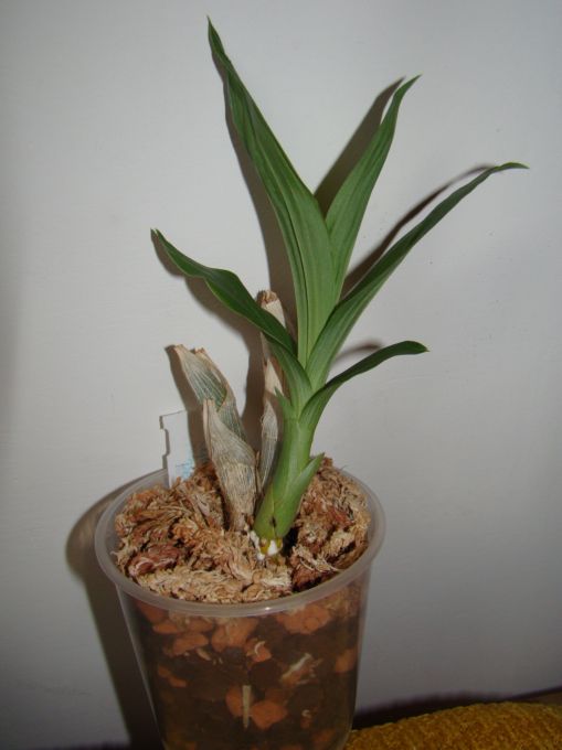 Catasetum fimbriatum chyba nie zdąży przejść okresu spoczynku bo straciło tylko dwa liście, dwa są całkiem zielone, pomimo tego że wszystkie dostawały słownie po kropelce wody raz na tydzień. Nawet psb nie kurczy się.