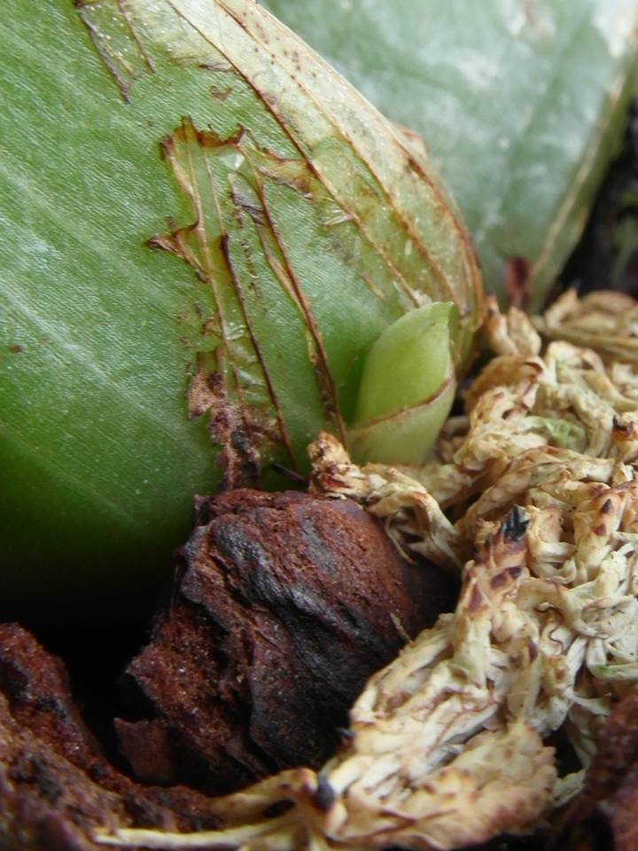 U podstawy wyrasta malutki przyrost, cała roślina składa się z 3 bulw.