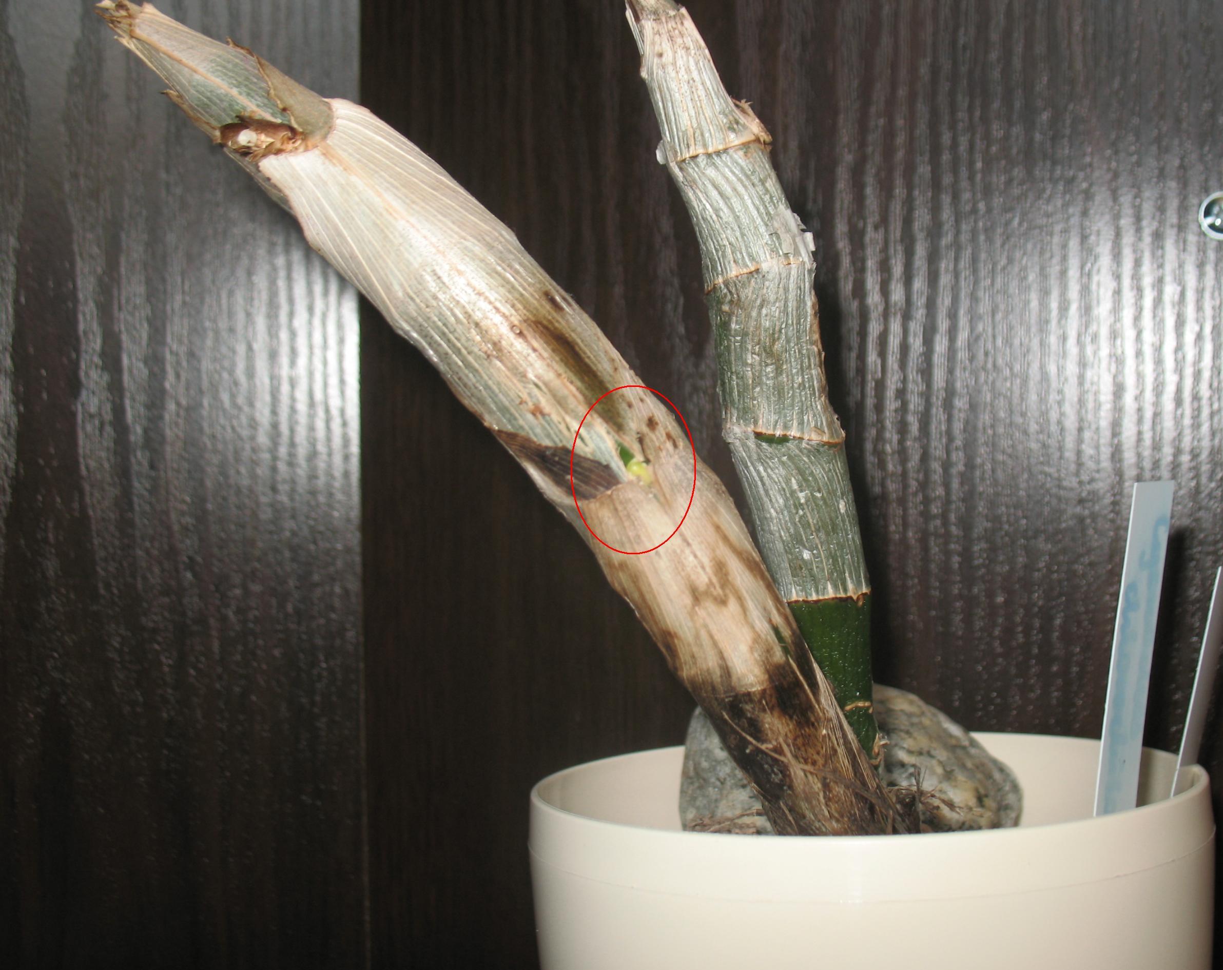 W tej chwili u podstawy zaczął pojawiać się nowy przyrost.