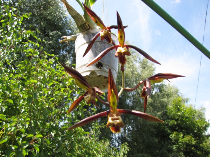 Wytworzył nową pseudobulwę i po pewnym czasie pojawiła się łodyga kwiatowa, ale pseudobulwa wciąż rośnie. Kwiatów jest sześć, nie pachną.