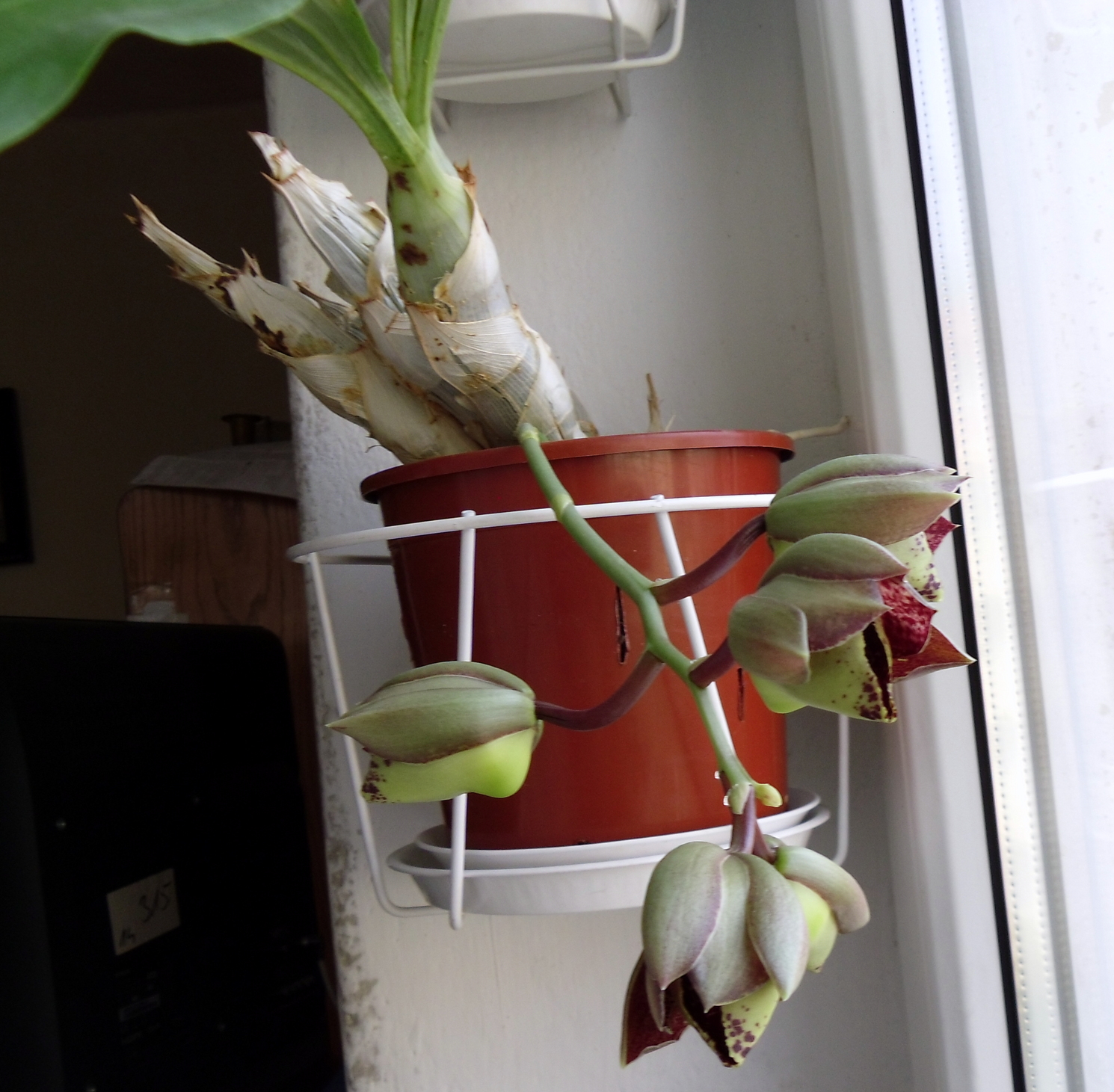 Cała roślina na swoim stałym miejscu. Obok Cycnoches loddigesii, które będzie kwitło tego roku trzeci raz.