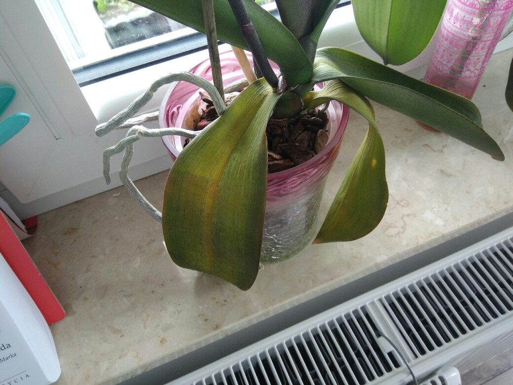 Witam. Mam storczyka w którym zaczynają usychać dolne liście. Storczyk jest po przejściach w trakcie pakowania oberwałem mu gałązkę z pąkami, w miejscu złamania wyrósł nowy pęd z kwiatami. Teraz kwiaty zaczynają opadać a dolne liście usychać. Korzenie wydają się zdrowe.