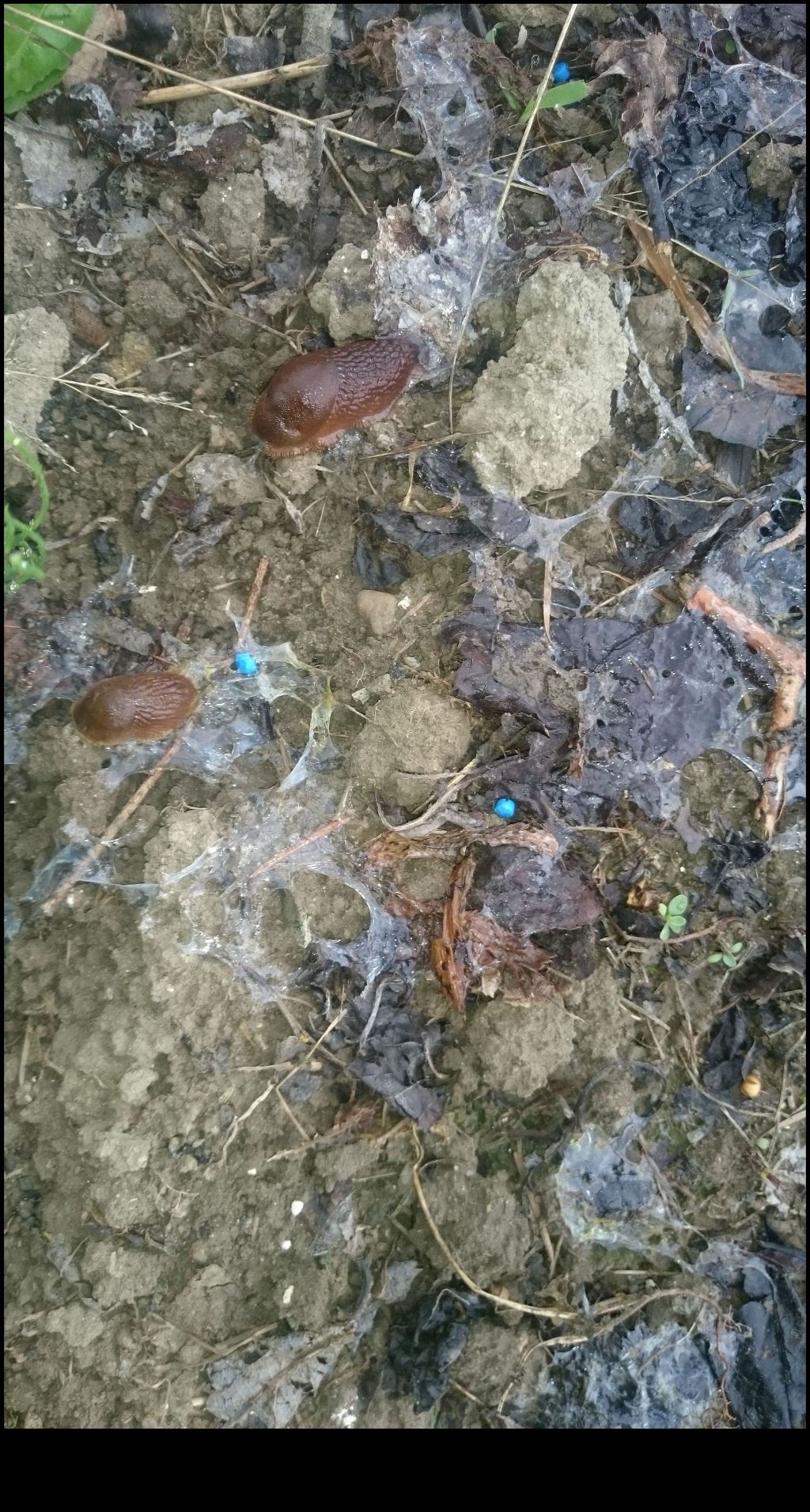 Przy okazji efekt działania granulatu na ślimaki. Uwaga! Drastyczne Niestety, żona granulat wysypała o jeden dzień za późno i fasolę zżarły