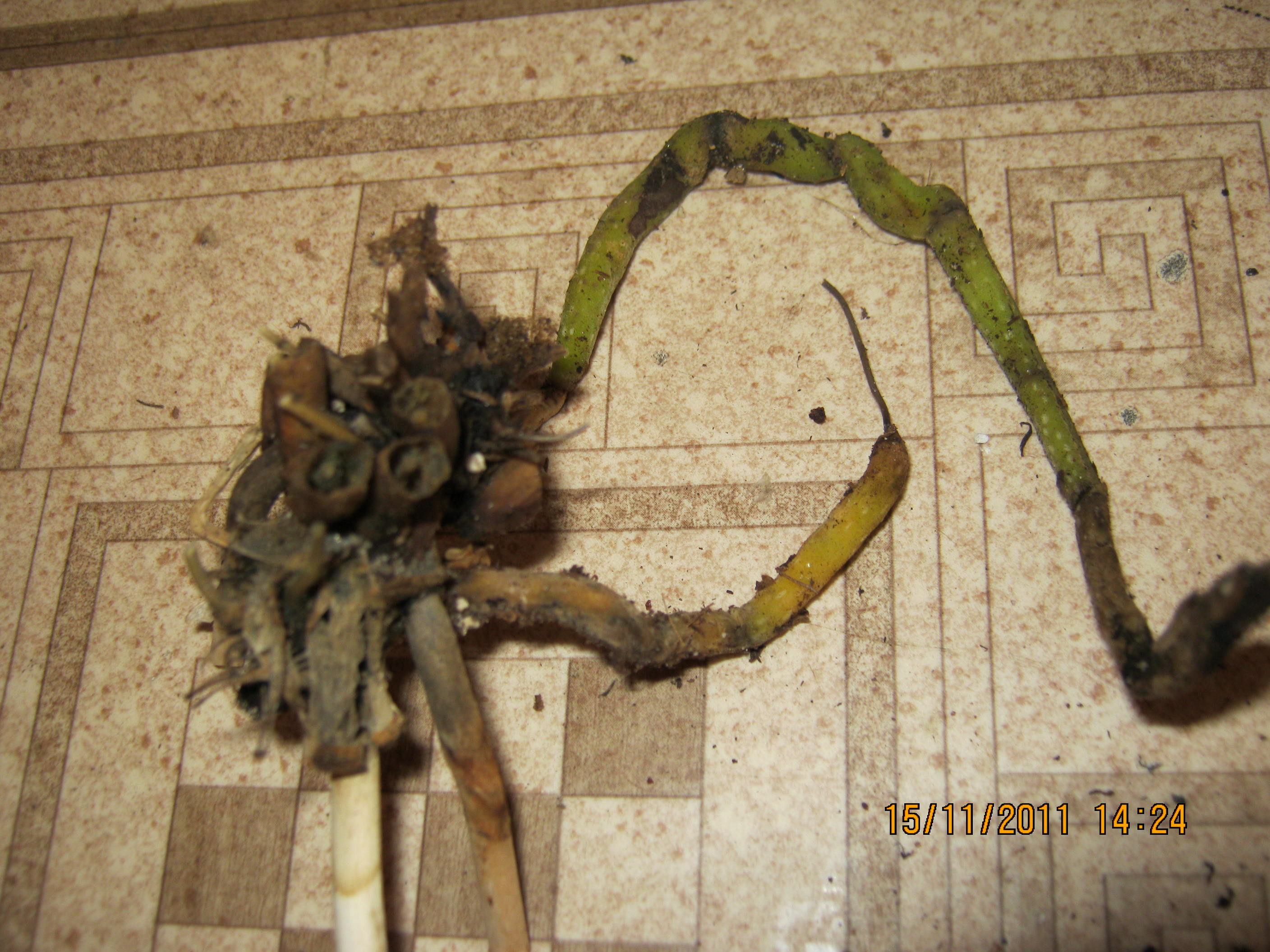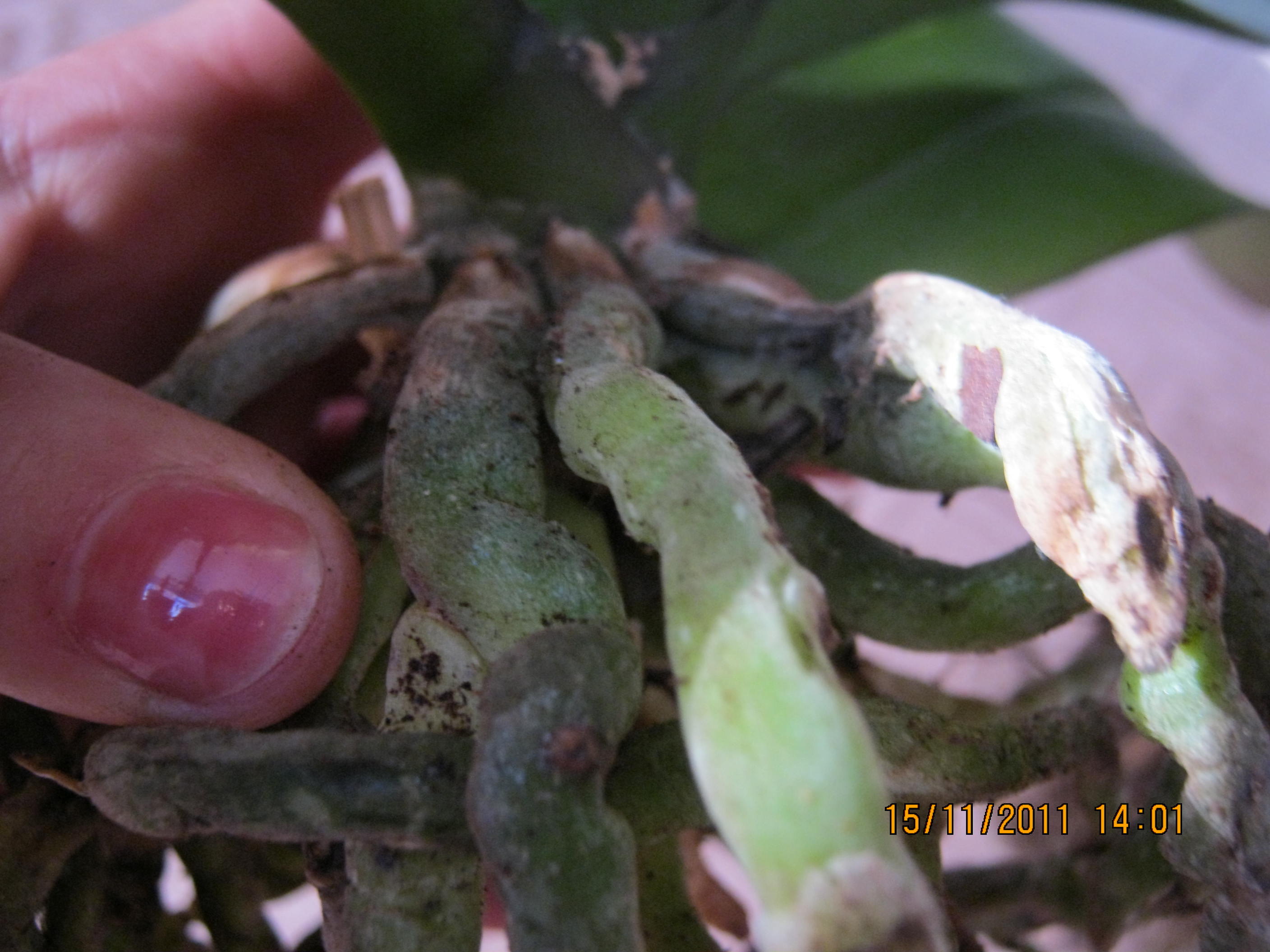 Jest w trakcie wypuszczania pędów nowych- korzeni. Tylko zastanawiam się ,czy one nie powinny iść w korę.