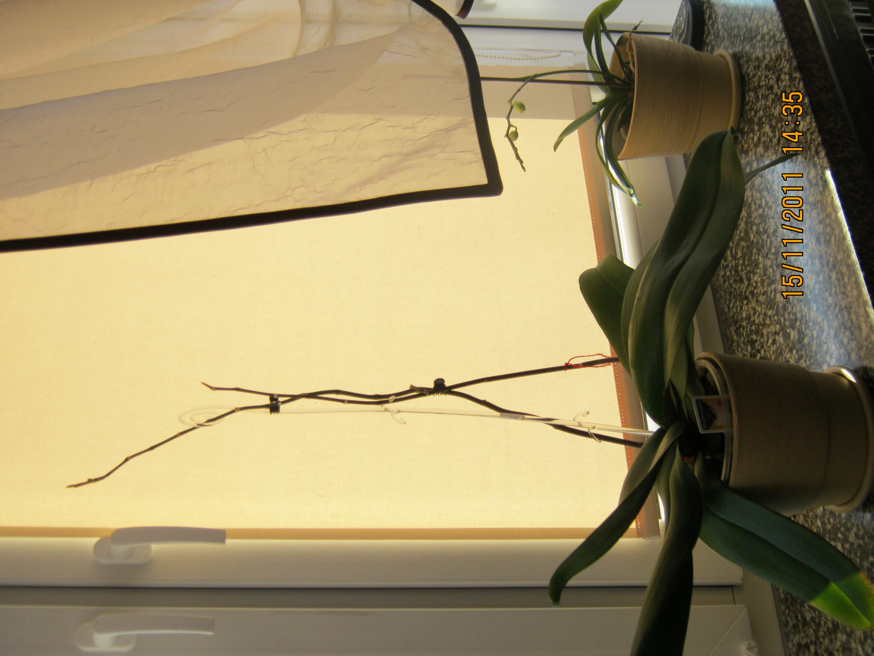 Co jednak teraz należy zrobić, uciąć te wystające 2 pędy kwiatowe-nad 3 oczkiem- zaznaczam żywe- na 1 z nich widać dalszy rozwój i pęczki- zalążki kwiatu.