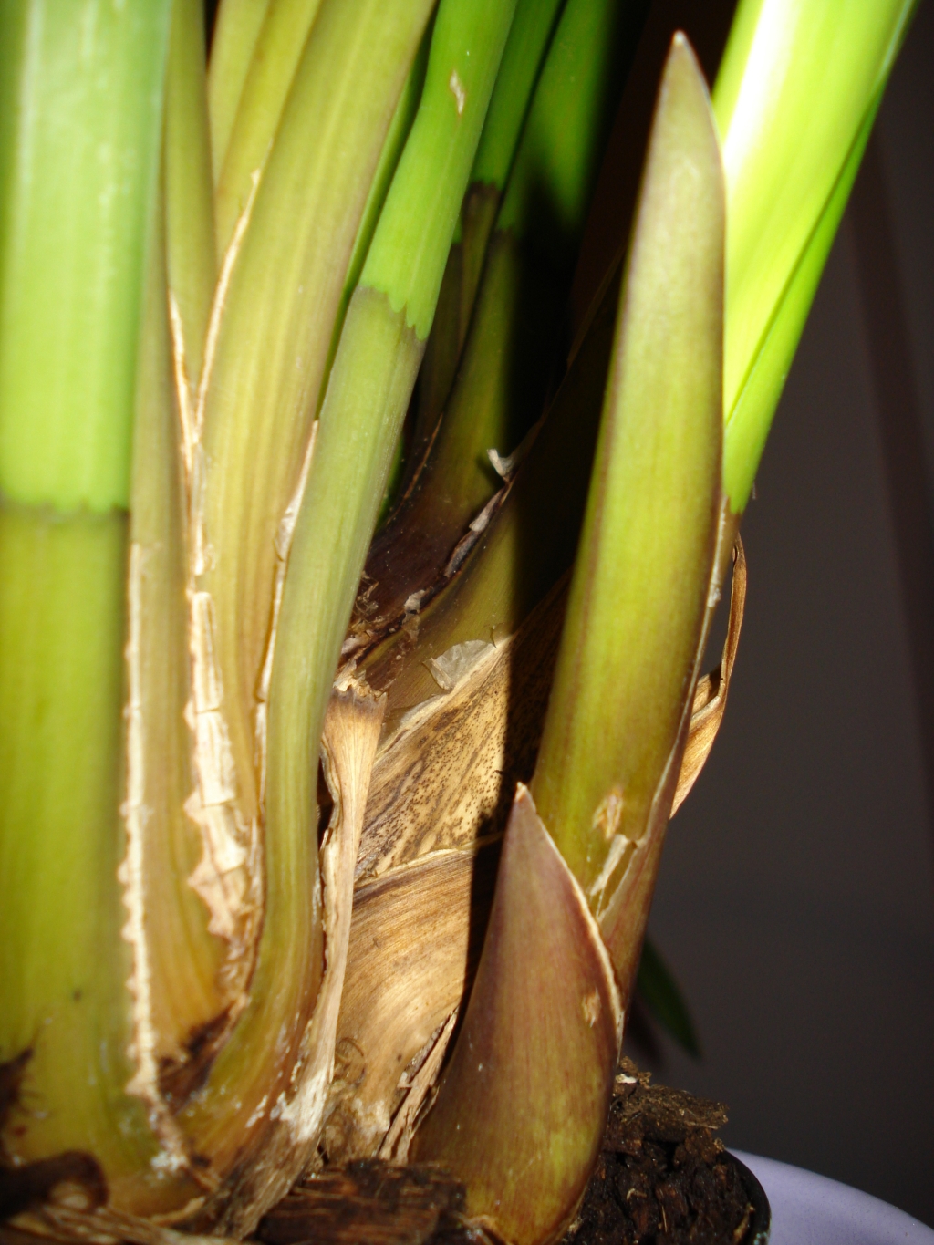Niedawno przyjechało do mnie z Holandii piękne Cymbidium, dzisiaj podczas zabiegów pielęgnacyjnych zauważyłem niepokojące zmiany na liściu (jak na razie na jednym). Do tego cymbałek od początku miał poskręcane końcówki liści. Czy mógłbym prosić o pomoc w zdiagnozowaniu problemu jaki męczy moją roślinkę? Dodam że kształtuje 2 nowe pseudo bulwki