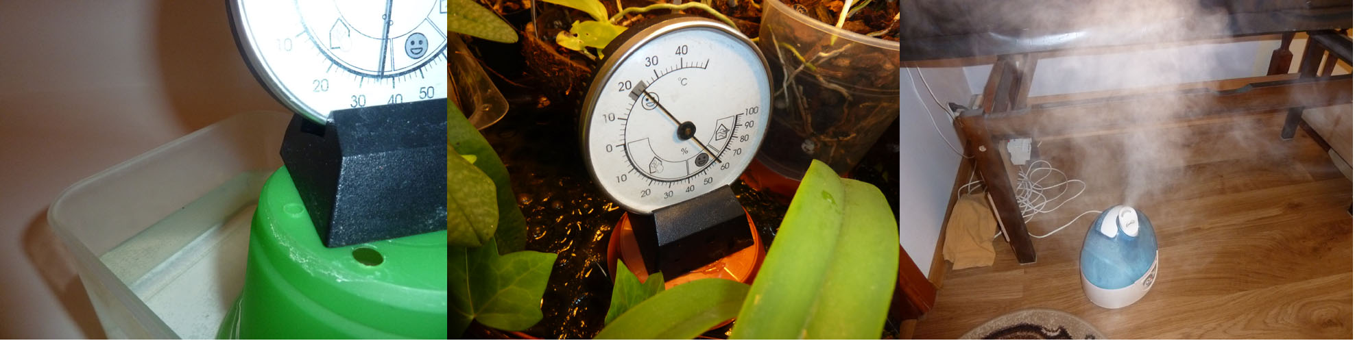 Nie mam tu na uwadze wilgotności panującej w podłożu, bo to kwestia podlewania roślin, lecz wilgotność wokół roślin wyznaczanej w % względem temperatury otoczenia. Starałem się zwrócić uwagę na tą kwestię i wywołać dyskusję, bo sam mam z otrzymaniem poziomu tego parametru problemy - viewtopic.php?f=3&t=532#p3776 . Również kiedyś tam w małej ankietce - viewtopic.php?f=3&t=722 odnosiliśmy się do kontroli tego parametru i działań jakie czynimy by utrzymać go :| na odpowiednim, dla danego gatunku, poziomie. Wyniki były zastanawiające. Myślę, że trochę 'luźne' traktowanie wilgotności i uleganie opinii, że tacki rozwiązują kłopot spowodowały, iż zabrałem się do poczynienia serii pomiarów i zobrazowania wyników na poniższych zdjęciach. ( kliknięcie na fotkę powoduje jej powiększenie )