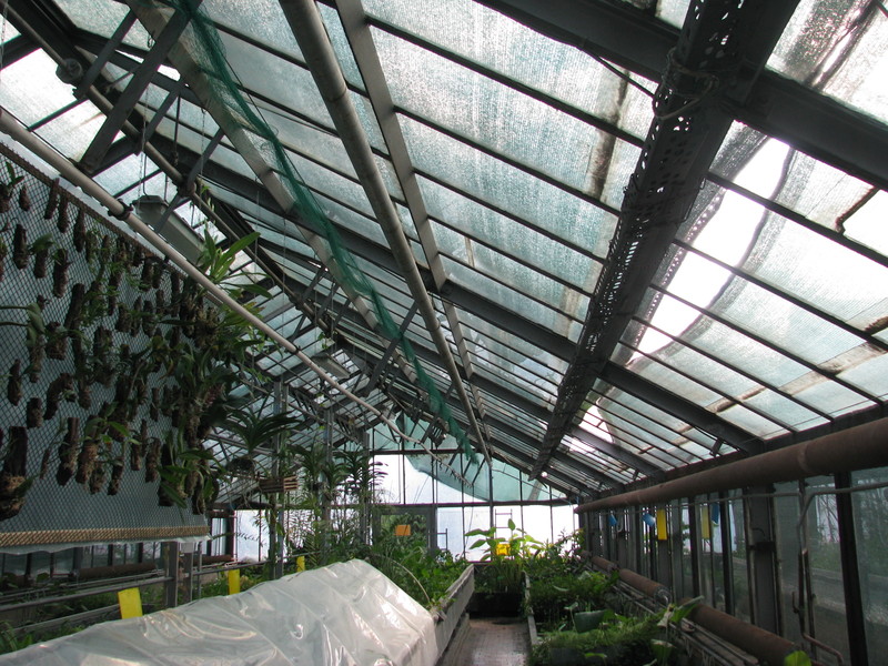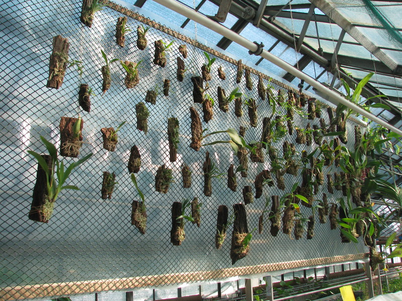 Z mojej rozwijającej się potężnie choroby storczykowej wynika to, że od ponad półtorej roku szukałem możliwości większego rozwoju niż tylko w domu, gdzie warunki dla storczyków są niekoniecznie doskonałe (okna północne i takie tam rzeczy). Ciężką pracą, zdobywaniem nowych kontaktów i nieugiętym dążeniem do celu zapracowałem sobie w końcu na to, o czym od dawna marzyłem - po rozmowie z dyrektorem Ogrodu Botanicznego uzyskałem zgodę na zagospodarowanie przestrzeni jednej ze szklarni (szklarni z roślinami wodnymi, gdzie zbiorniki z nimi są przy ziemi, a cała pozostała przestrzeń jest wolna). Już wcześniej zawisły tam moje Vandy, które aktualnie wypuszczają po kilkanaście korzeni każda, ale w tym momencie mam nieograniczone możliwości. Jako, że jest to mój projekt prywatny i Ogród nie wykłada na to pieniędzy to przenoszę tam swoje wszystkie rośliny na podkładkach (oczywiście te ciepłolubne) oraz będę rozszczepiał na podkładki cześć doniczkowych, bo do dyspozycji mam kilkadziesiąt metrów kwadratowych pionowej powierzchni.