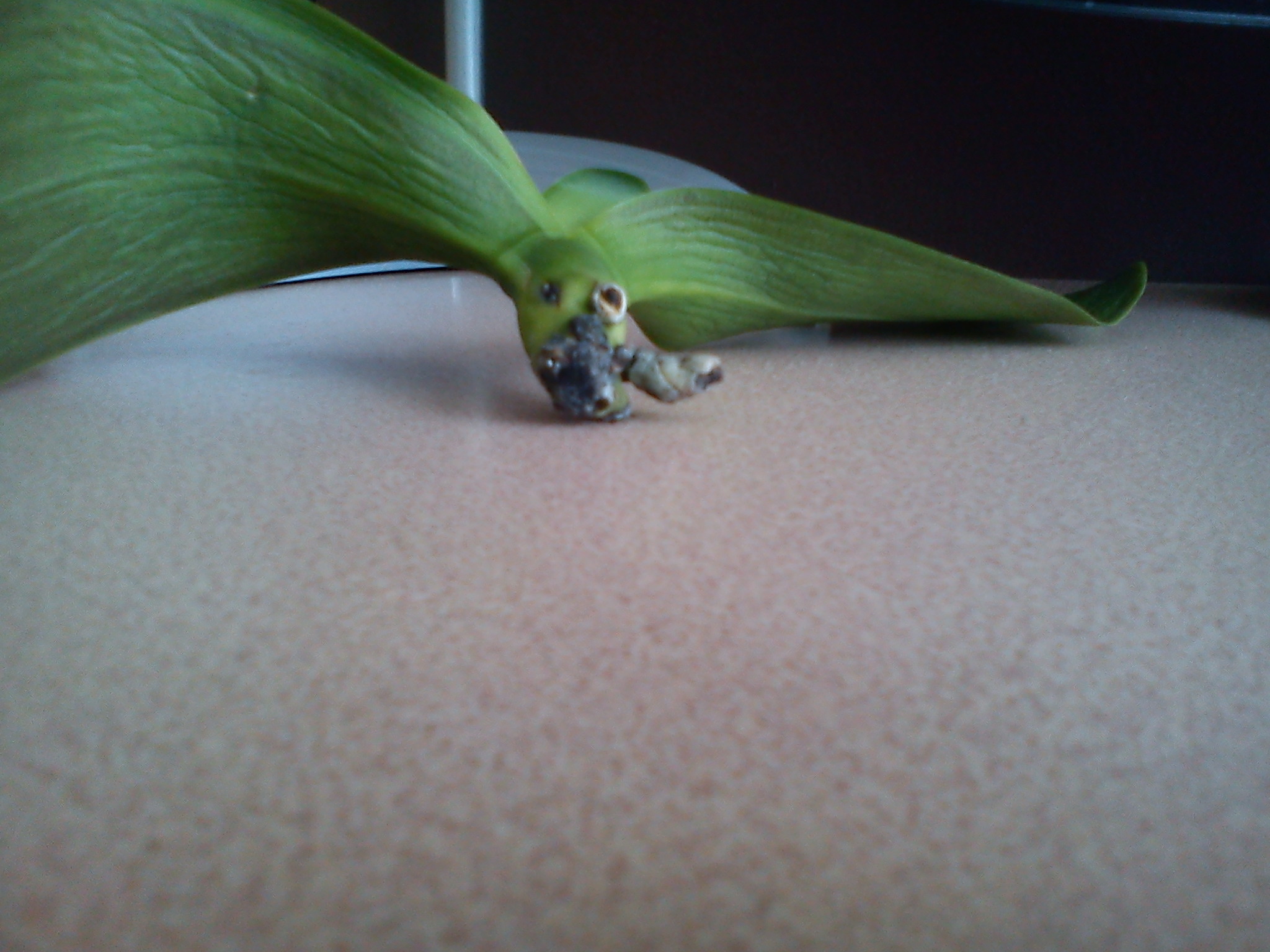 Reanimuję swojego storczyka, gdyż korzenie mu gniły z przelania, a jeszcze zielona łodyga po przekwitnięciu została przycięta i częściowo zdrewniała.